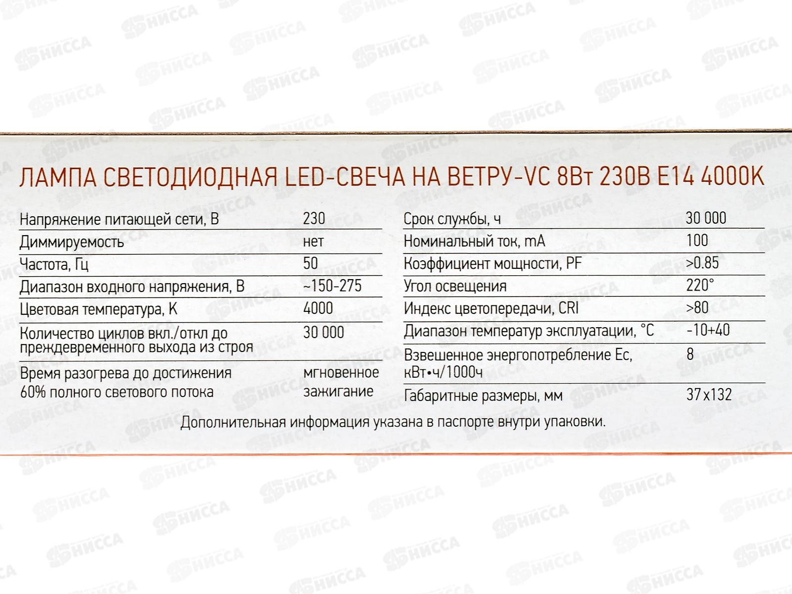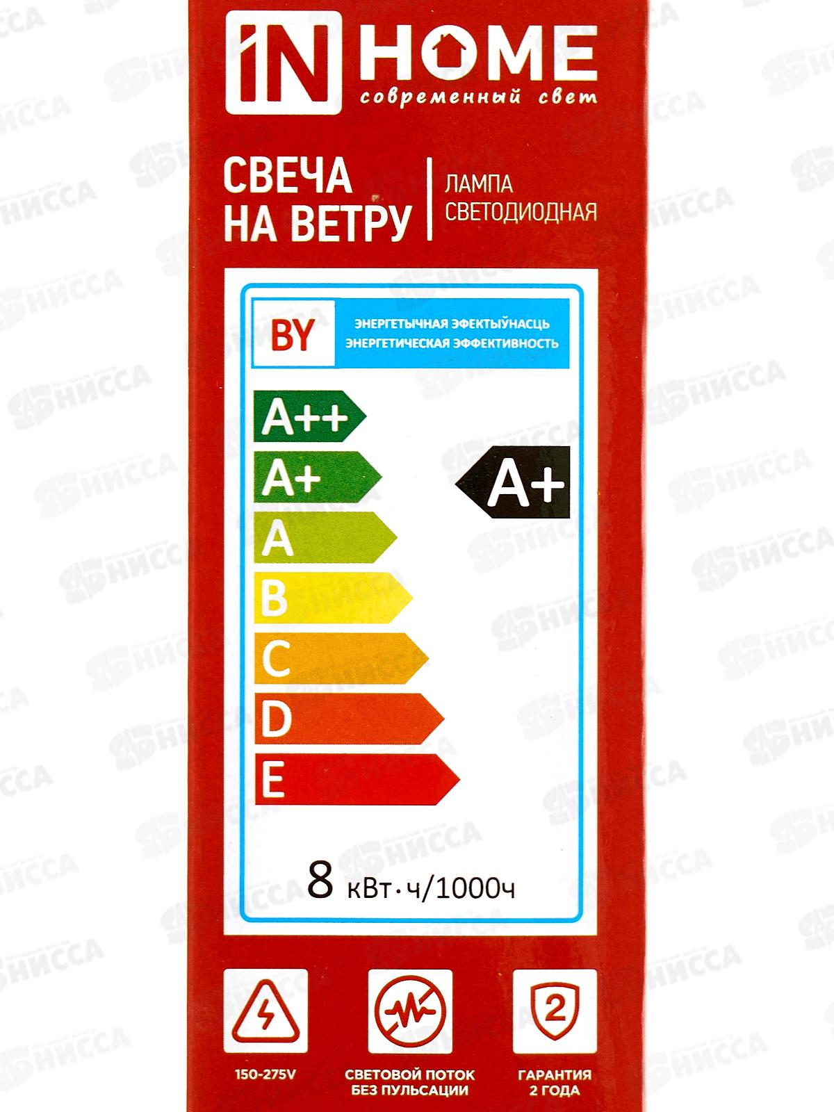 Лампа светодиодная IN HOME LED-Свеча на ветру-VC 8Вт E14 4000К 760Лм 50*