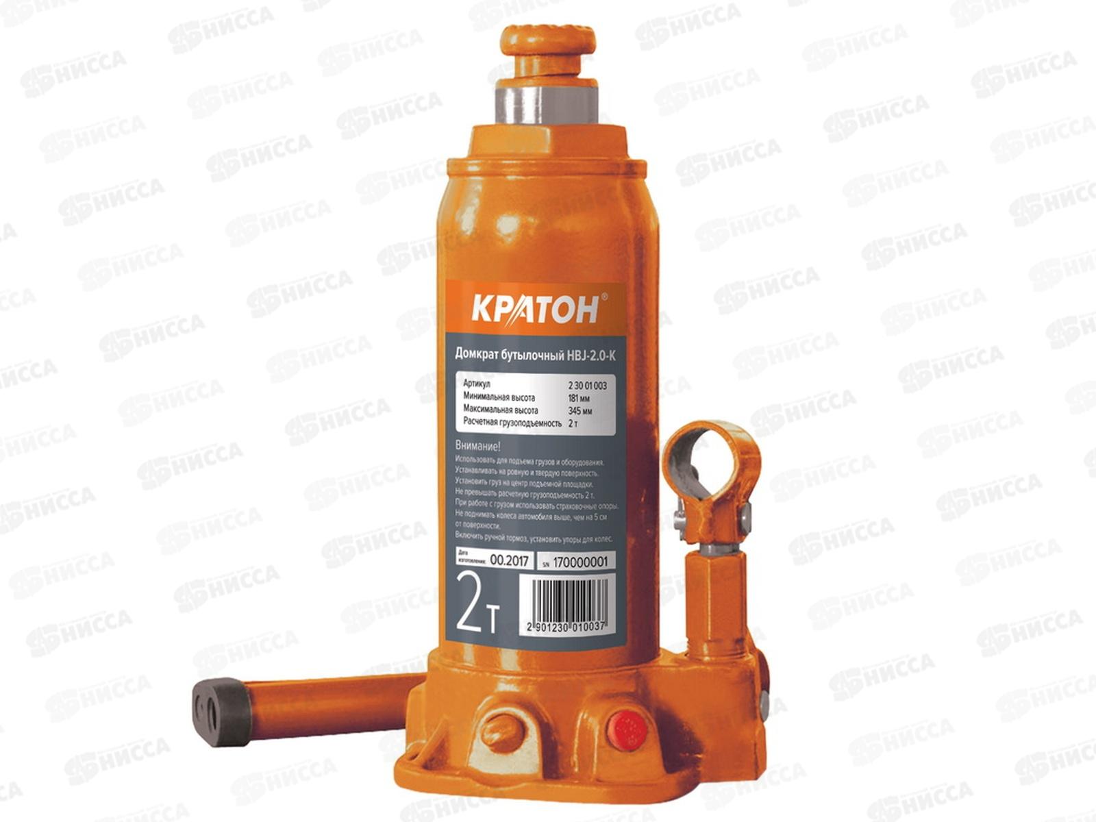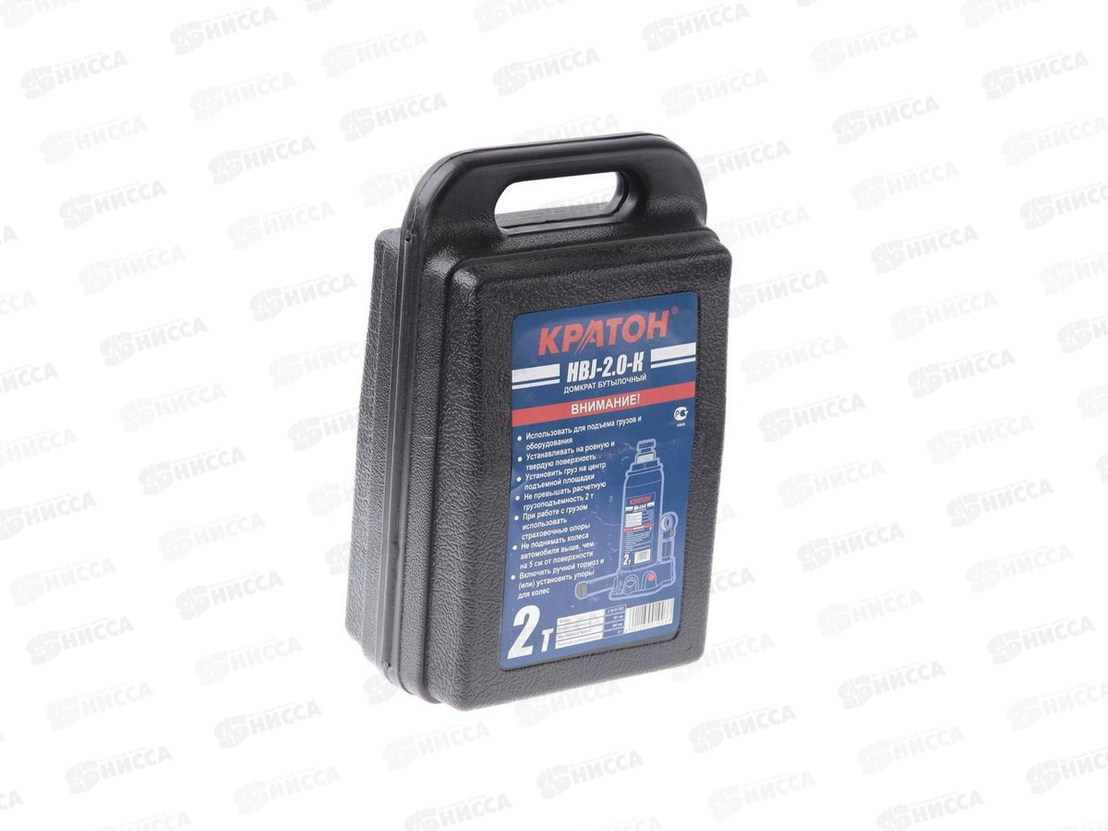 Домкрат гидравлический бутылочный 2т, высота подъёма 181-345мм, в кейсе, Кратон HBJ-2.0-K