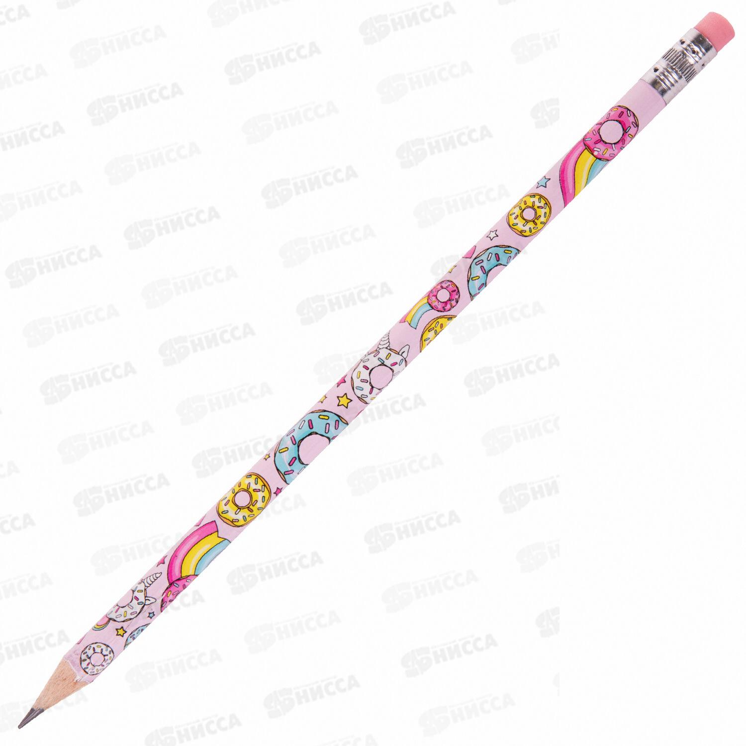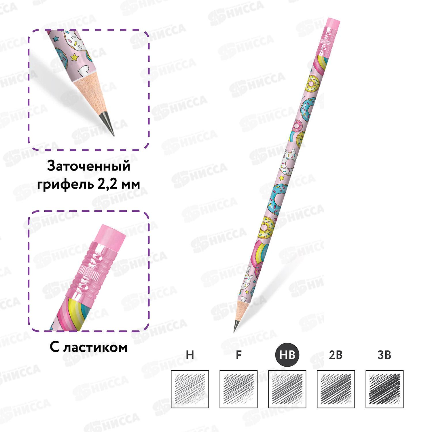 Карандаш чернографитный с ластиком Юнландия Сладкие истории, HВ 181750*45/360