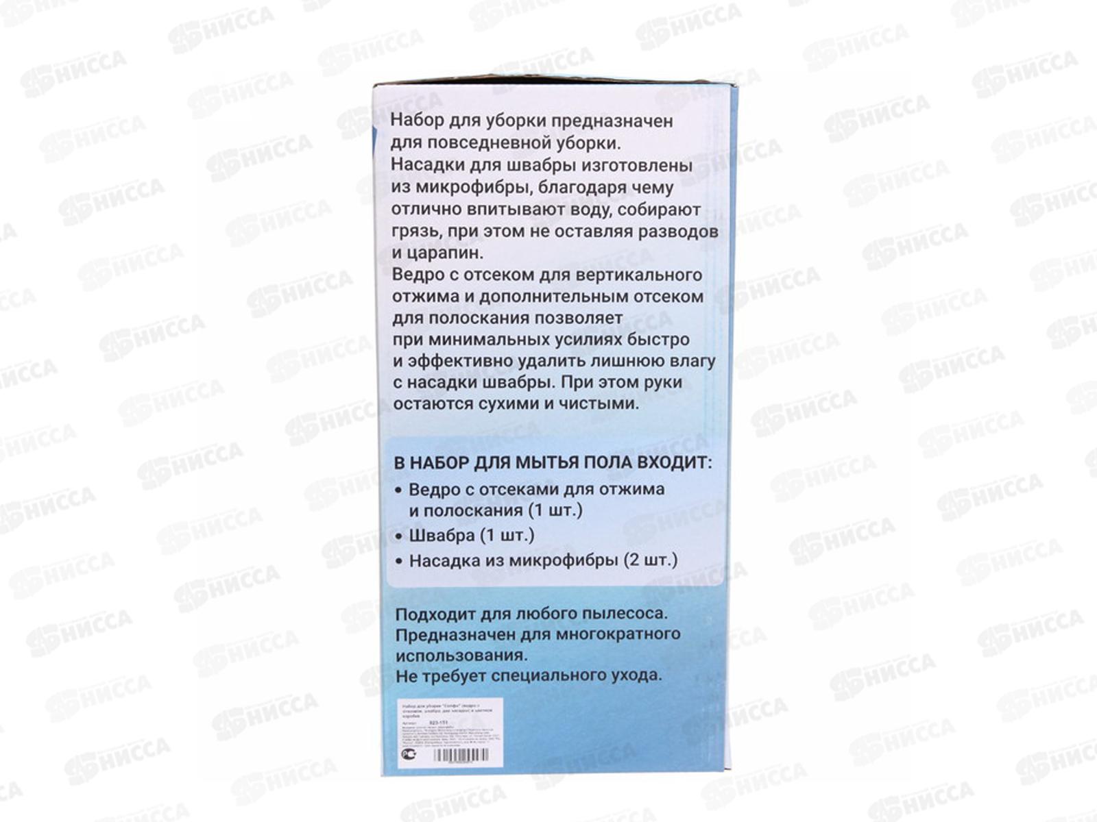 Комплектация: ведро с отжимом 5 л, швабра + две насадки