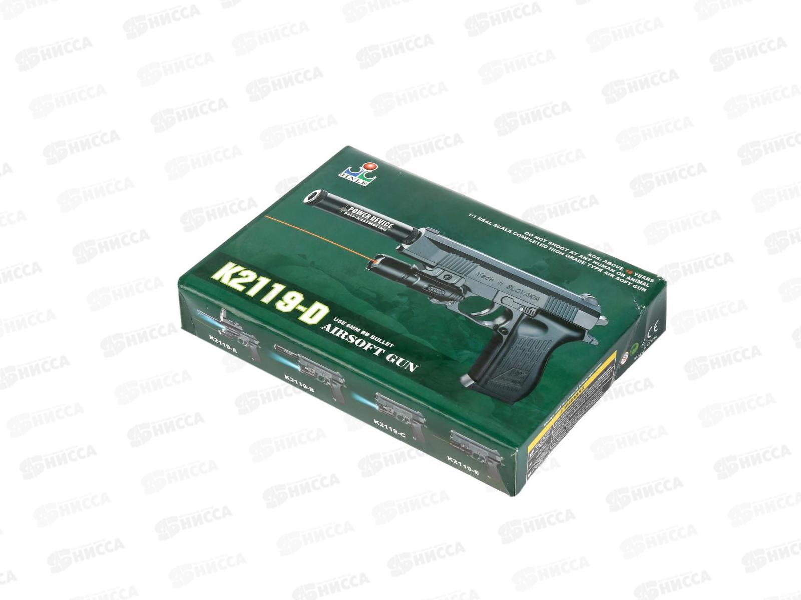 Пистолет с лазерным прицелом, с глушителем К2119-D, 100000230 в коробке