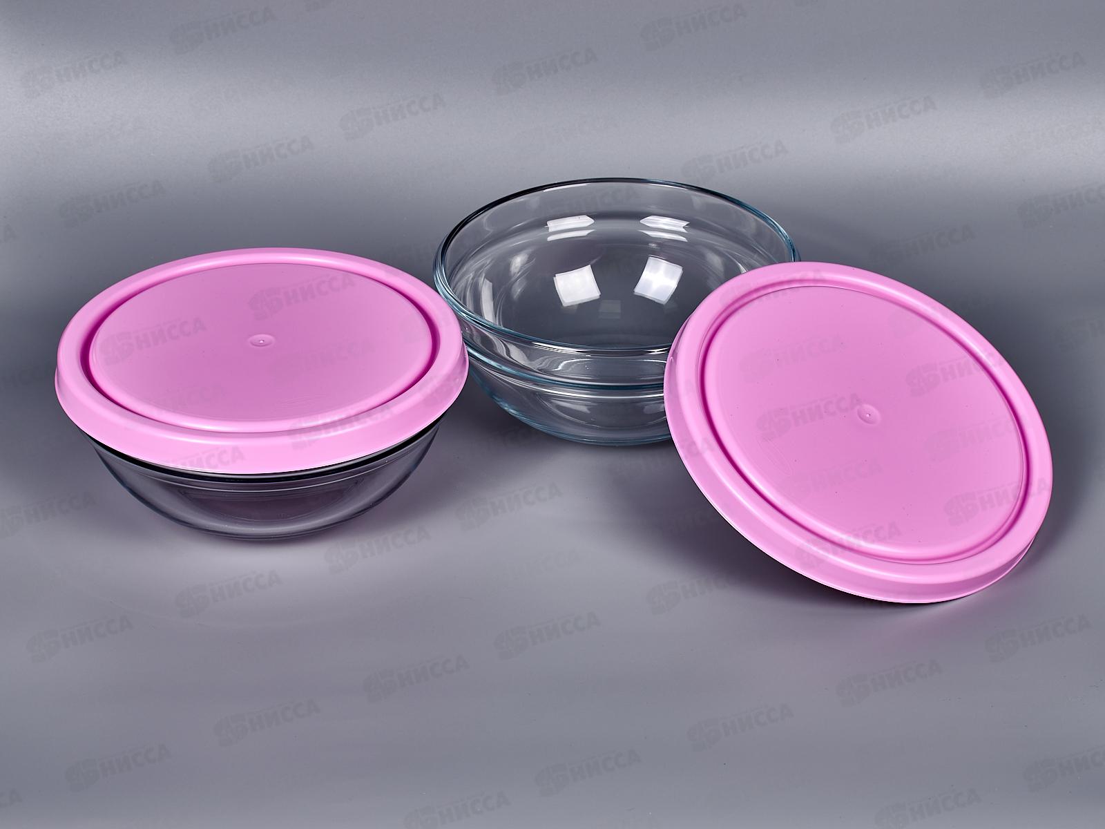Набор салатников Шеф 172мм 2шт из закаленного стекла с розовой крышкой 53563BTD2