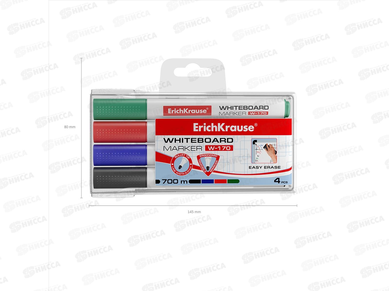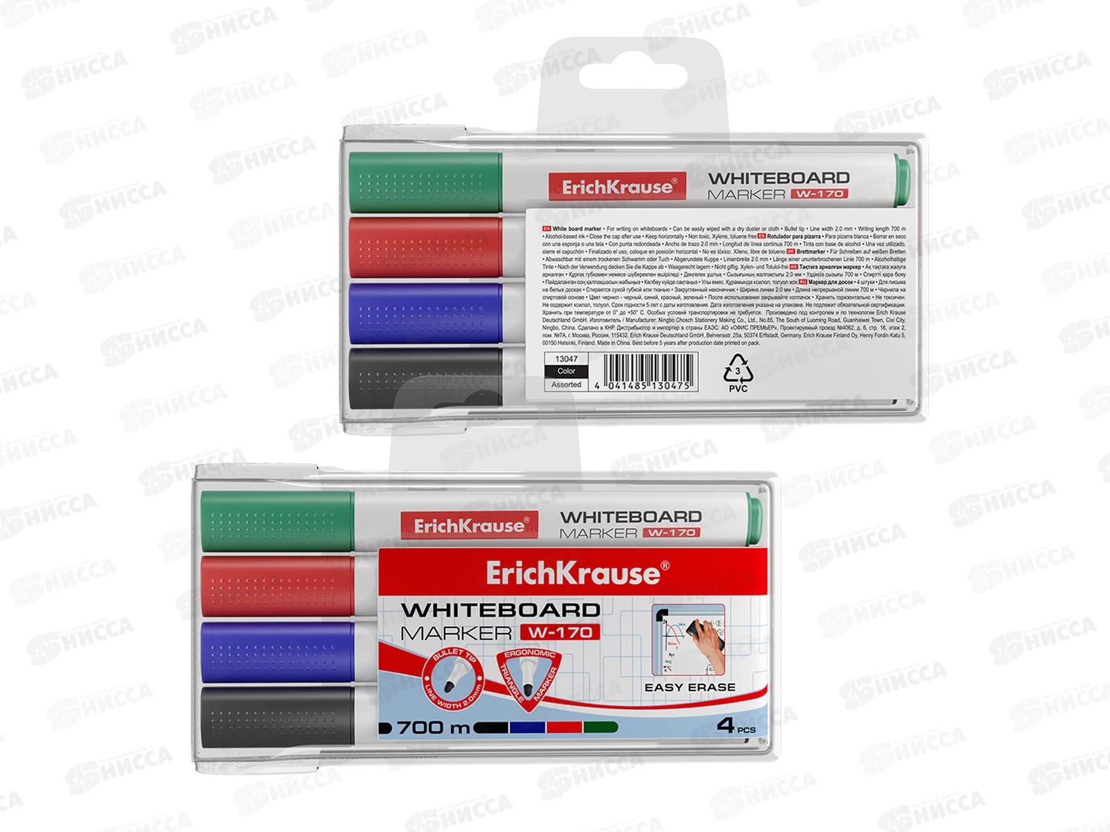Маркер для доски EK W-170 13047(в футляре 4цвета черный+синий+красный+зеленый) *36