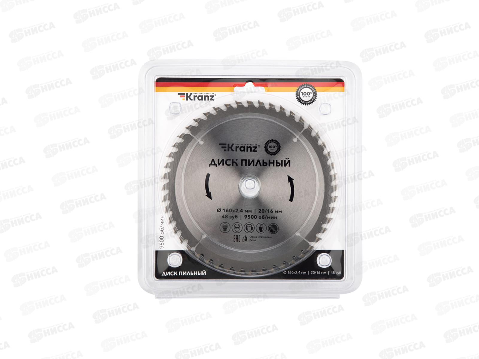 Диск пильный 160мм х 48зуб х 20/16мм Kranz, KR-92-0108