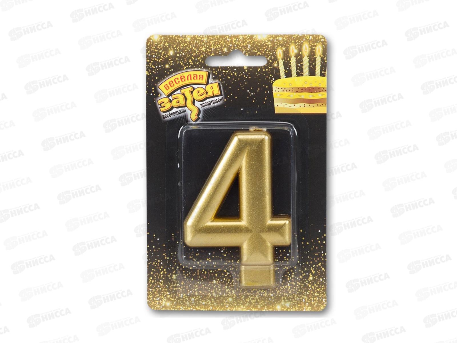 Свеча - цифра "4" Золотая 8см /V, 1502-2837