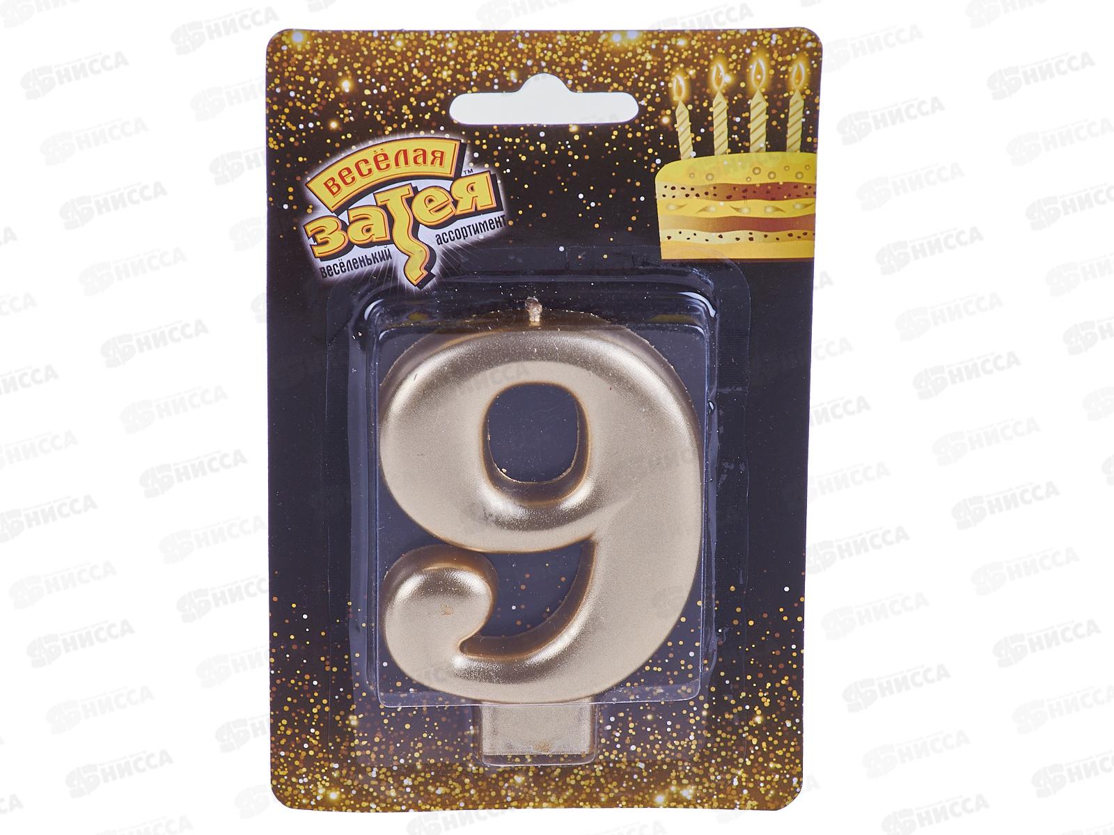 Свеча - цифра "9" Золотая 8см /V, 1502-2842