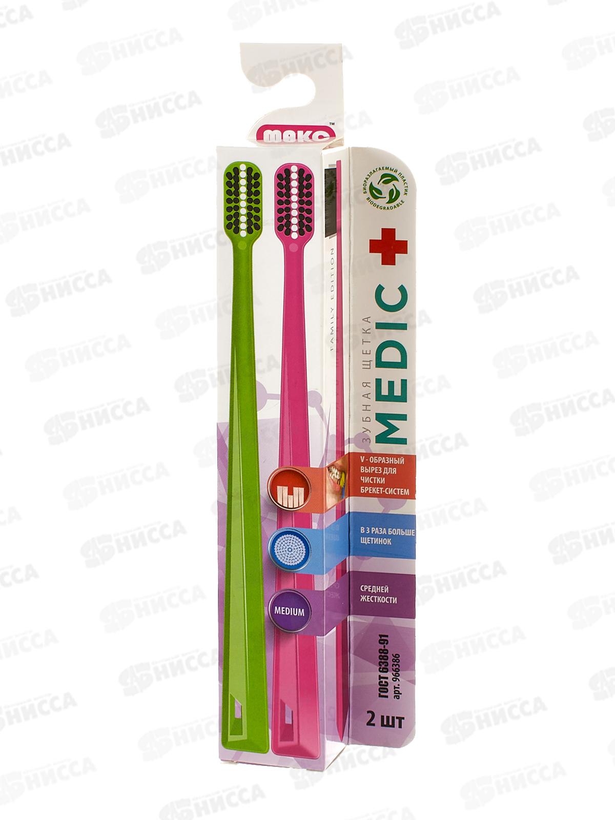 Зубная щетка Медик биоразлагаемая брекет систем 2шт средняя зелено+розовый *20
