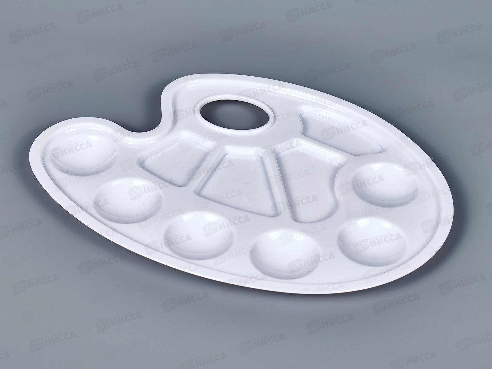 Палитра художника предназначена для смешивания красок и получения новых тонов при создании картины. Имеет классическую форму, безупречно гладкую поверхность белого цвета, а также отверстие для большого пальца руки. Легко отмывается после использования.
