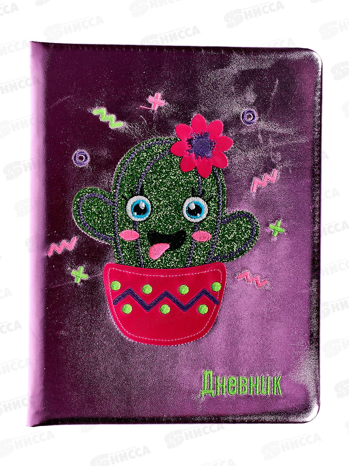 Дневник ПП Энергичный кактус, кожзам, аппликация+вышивка, Д48-5553 *30