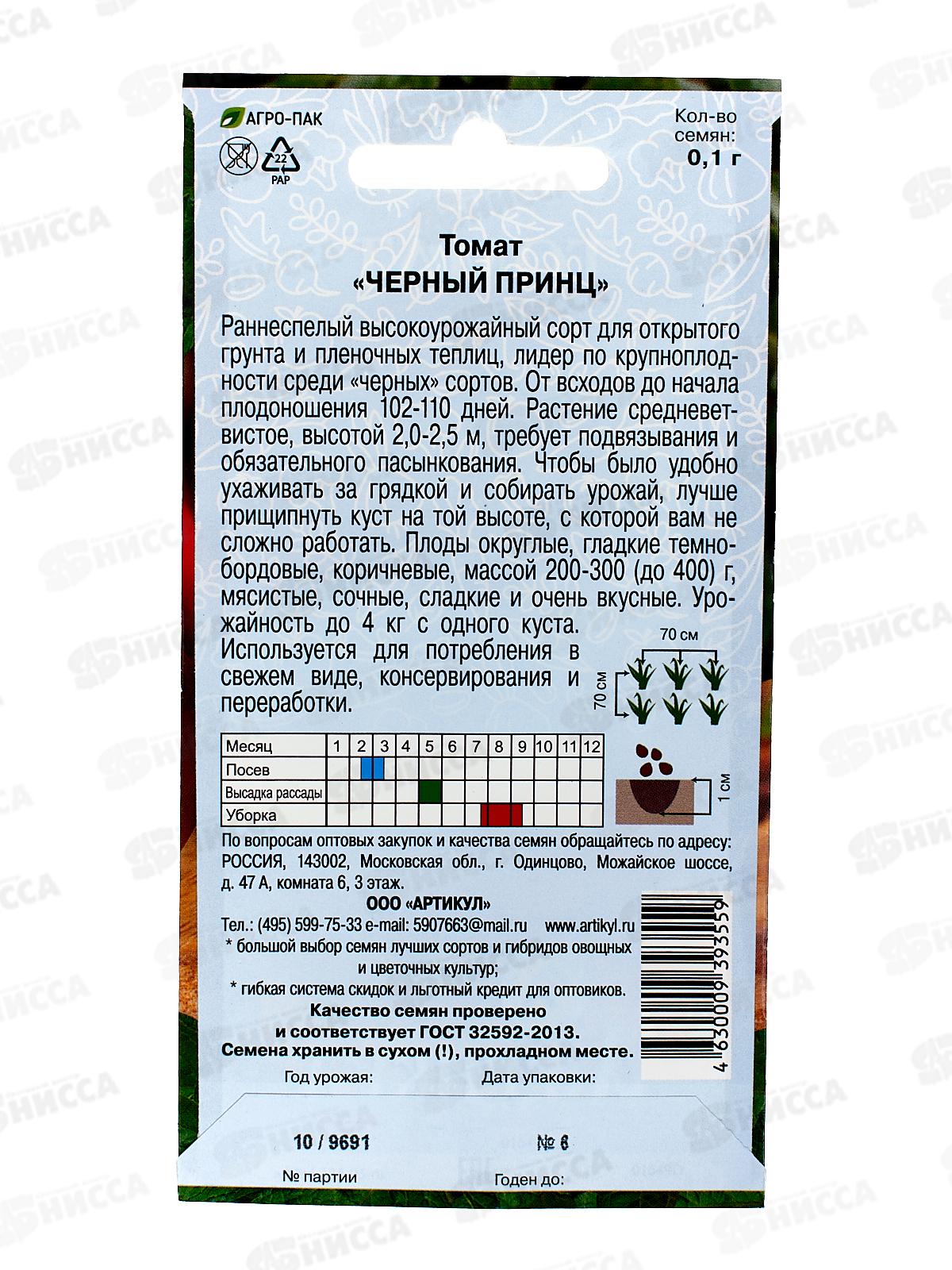 Томат "Чекрный принц" - раннеспелый высокоурожайный сорт для открытого грунта и пленочных теплиц, лидер по крупноплодности среди «черных» сортов. От всходов до начала плодоношения 102-110 дней. Растение средневетвистое, высотой 2,0-2,5 м, требует подвязывания и обязательного пасынкования. Чтобы было удобно ухаживать за грядкой и собирать урожай, лучше прищипнуть куст на той высоте, с которой вам не сложно работать. Плоды округлые, гладкие темно-бордовые, коричневые, массой 200-300 (до 400) г, мясистые, сочные, сладкие и очень вкусные. Урожайность до 4 кг с одного куста. Используется для потребления в свежем виде, консервирования и переработки. Томаты уменьшают уровень холестерина в крови; рекомендуются при заболеваниях желудочно-кишечного тракта (легко перевариваются и усваиваются). Плоды богаты солями калия, железа, магния, кобальта и цинка.