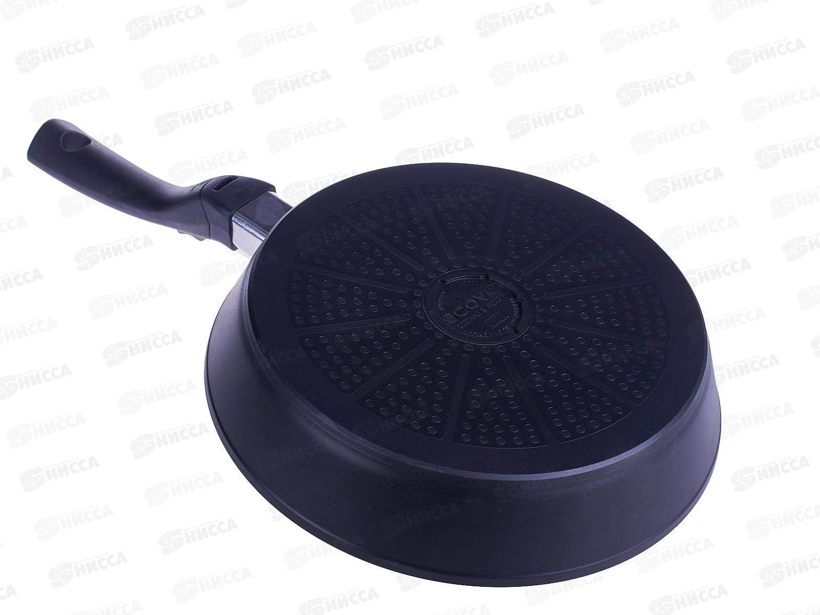Утолщённое дно армировано диском из нержавеющей стали, который придает дополнительную прочность и обеспечивает равномерное распределение тепла по всей внутренней поверхности сковороды. Эргономичная съёмная ручка, выполненная из сверхпрочного ненагревающегося материала, позволяет сэкономить место на Вашей кухне при хранении и использовать сковороду Без! ручки в духовом шкафу.
