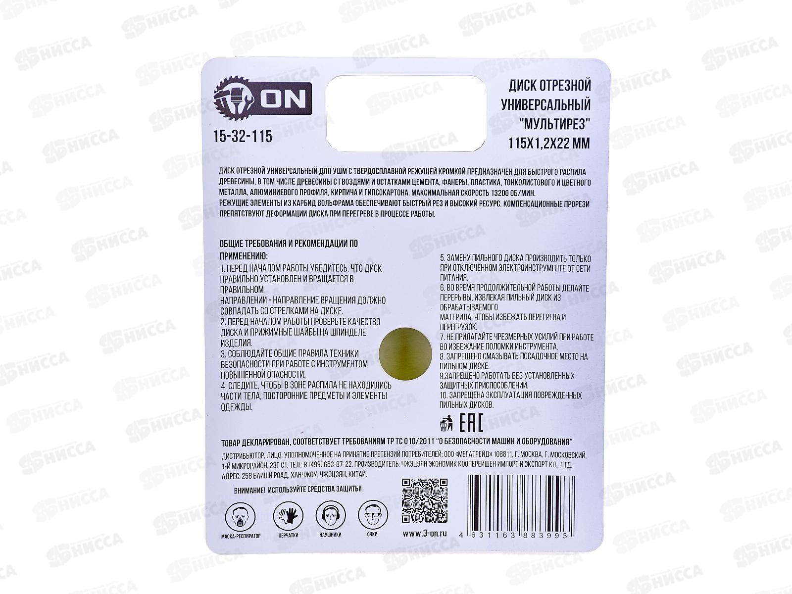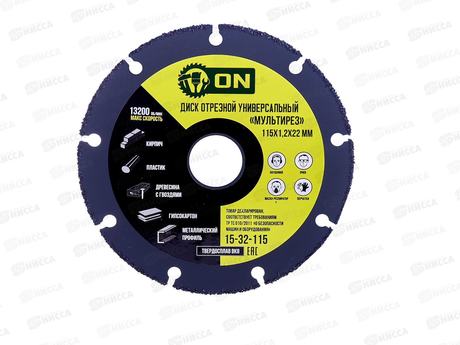 Диск отрезной универсальный "Мультирез" 115х1,2х22мм, ON, карбид вольфрам (для УШМ)15-32-115
