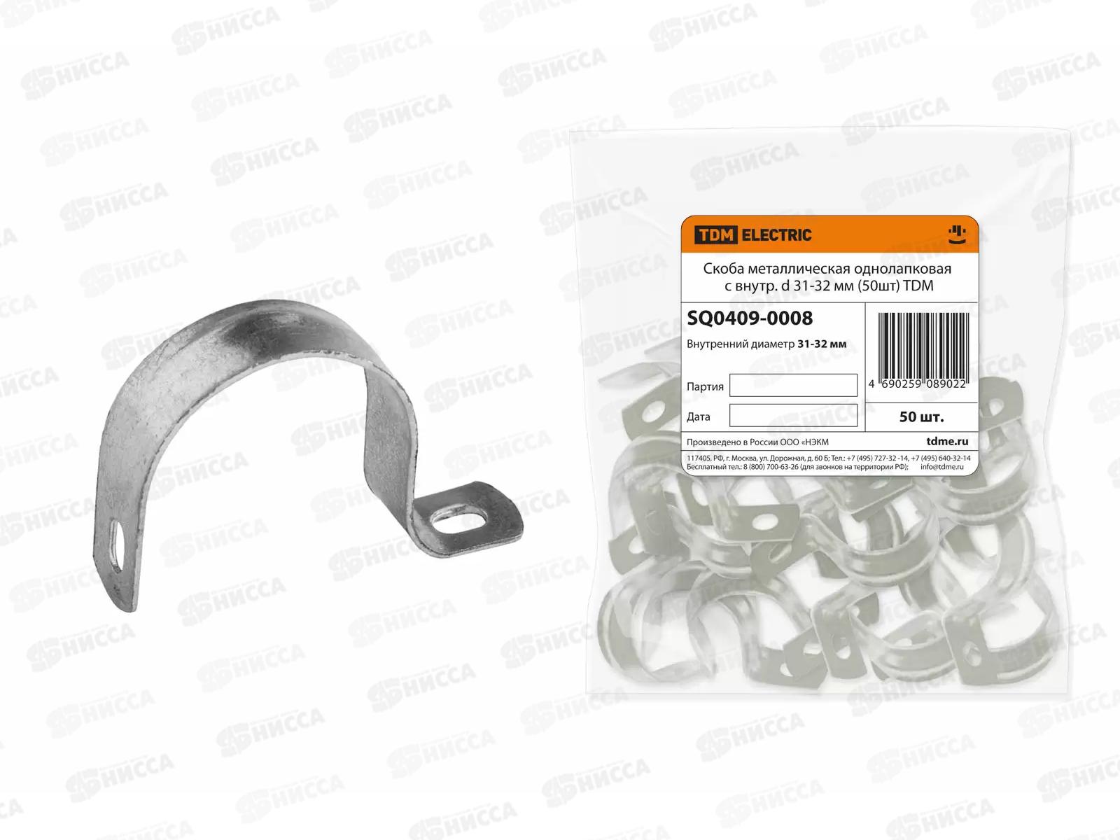 Скоба металлическая однолапковая с внутр. d 31-32мм TDM 0008*50