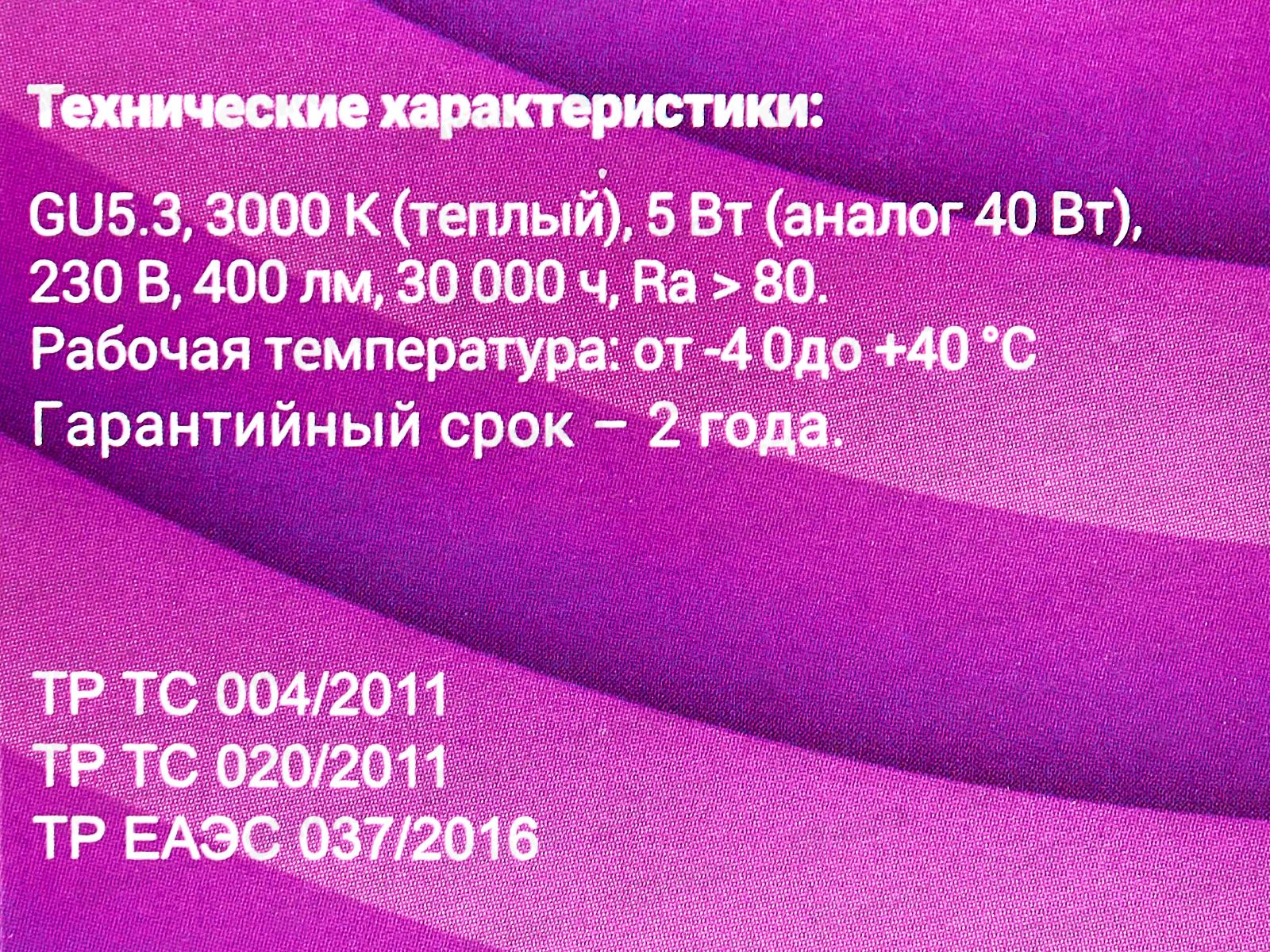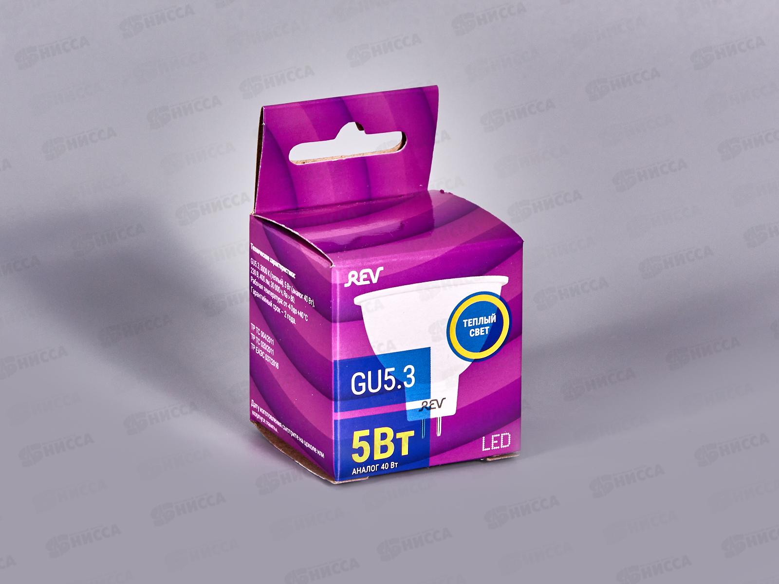 Лампа светодиодная REV MR16, 5Вт, GU5.3, 3000К, 400Лм софит *20