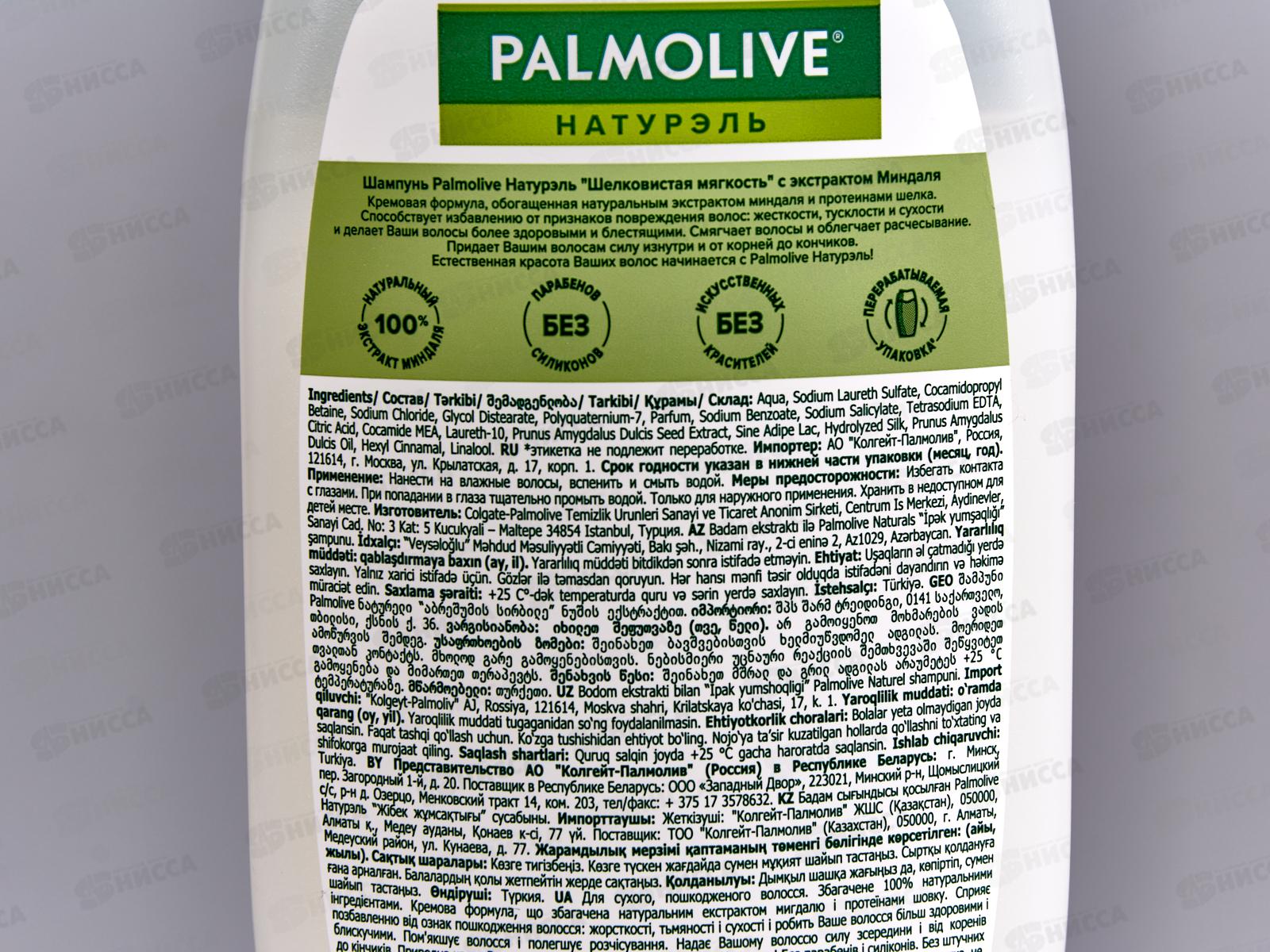 Состав: вода; лауретсульфат натрия; кокамидопропилбетаин; хлорид натрия; гликоль дистеарат; поликватерниум-7; парфюмерная композиция; бензоат натрия; салицилат натрия; тетранатрий ЭДТА; лимонная кислота; кокамид МЭА; лаурет-10; экстракт семян сладкого миндаля (Prunus Amygdalus Dulcis); лак синусита (Sine adipe); гидролизованный шелк; масло сладкого миндаля (Prunus Amygdalus Dulcis); гексилциннамаль; линалоол.