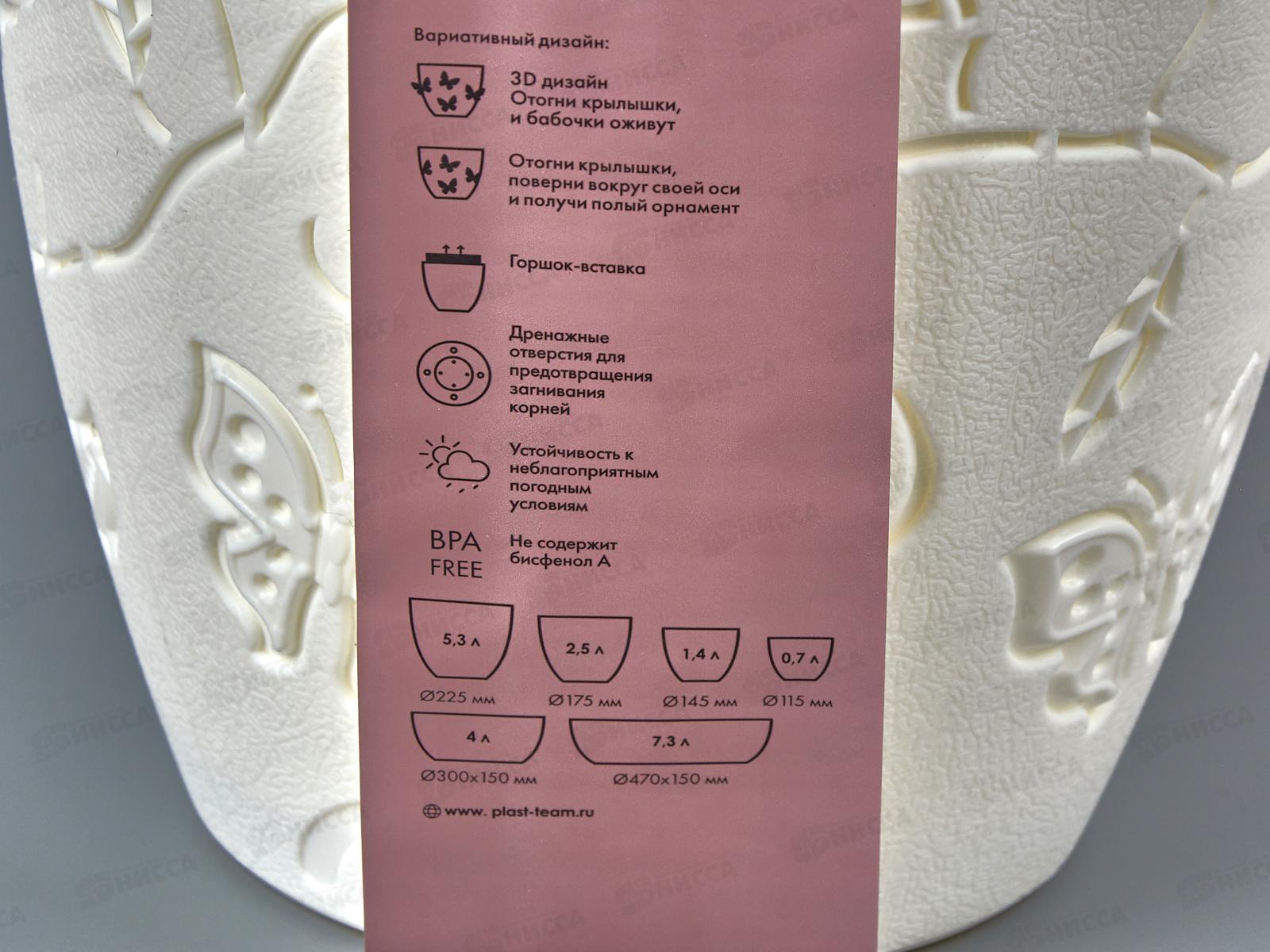Горшок для цветов "Butterflies" D145мм 1,4л молочный туман 401210048