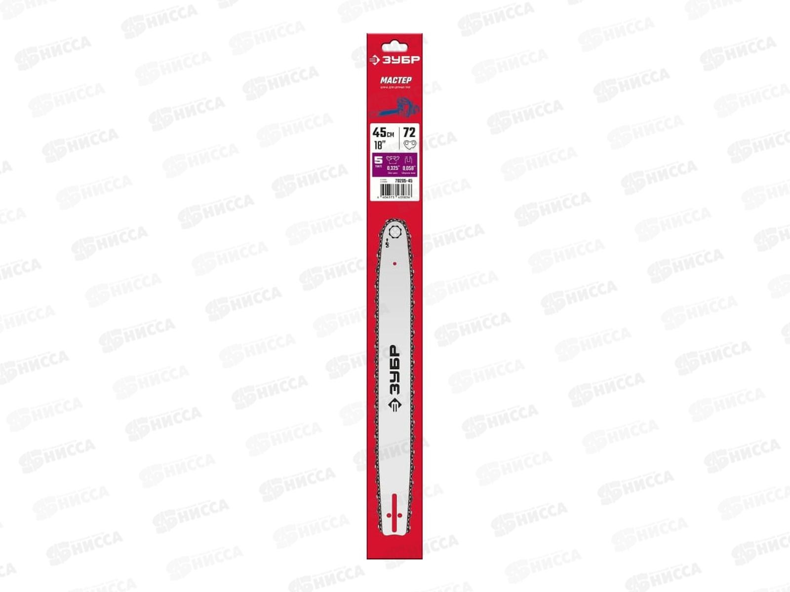 Шина ЗУБР тип 5, шаг 0.325", паз 1.5 мм, 45 см 70205-45 изготовлена для использования в самых ответственных работах и в самых трудных условиях. Высокое качество материала гарантирует надежность и отличные характеристики на весь срок службы. Совместима с пилами ЗУБР ПБЦ-М49-45, ПБЦ-М52-45, ПБЦ-М62-50.