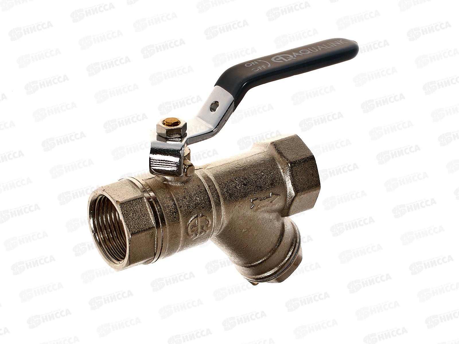 Кран шаровый с косым фильтром FF 3/4 Vs гайка-гайка ручка, Aqualink, 01164 *5/50