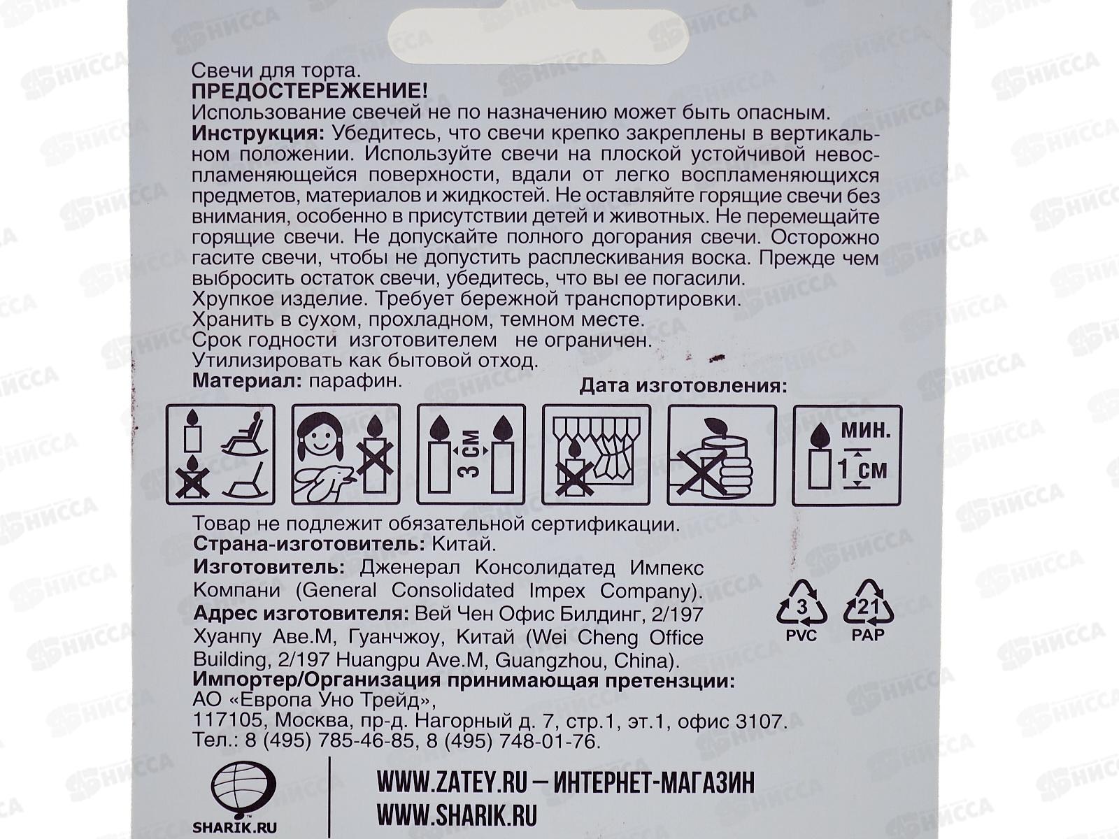 Свечи для торта Золото 6см 10шт/G, 1502-6170