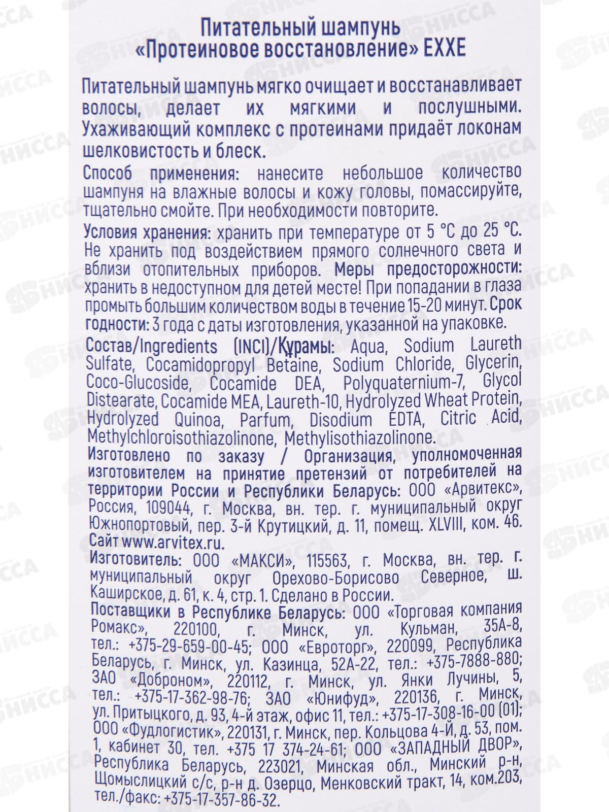 EXXE Шампунь для волос Протеиновое восстановление Protein Plus 400мл *12 С0007778
