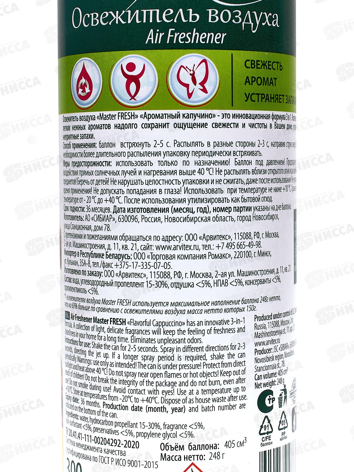 Master FRESH освежитель воздуха Ароматный капучино 300мл *24 С0006482
