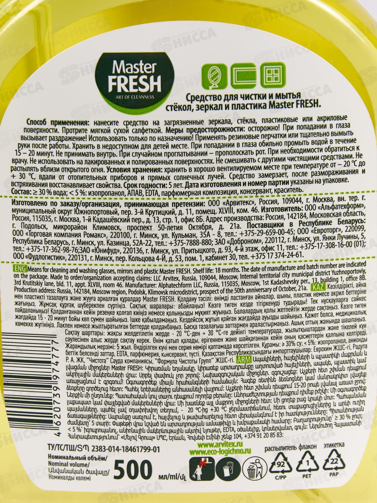 Master FRESH Средство для стекол и зеркал 500мл *10 С0006738