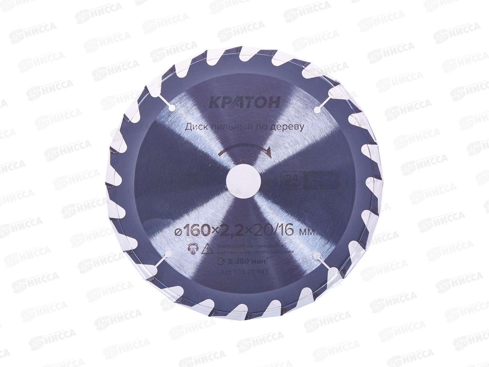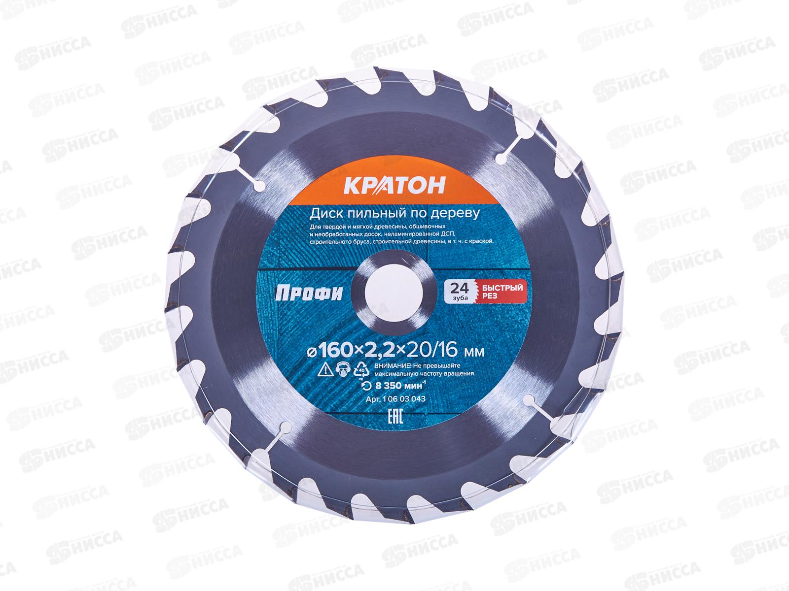 Диск пильный по дереву быстрый рез Кратон PROFESSIONAL O160х20/16х2,2мм, 24Т(10603043)