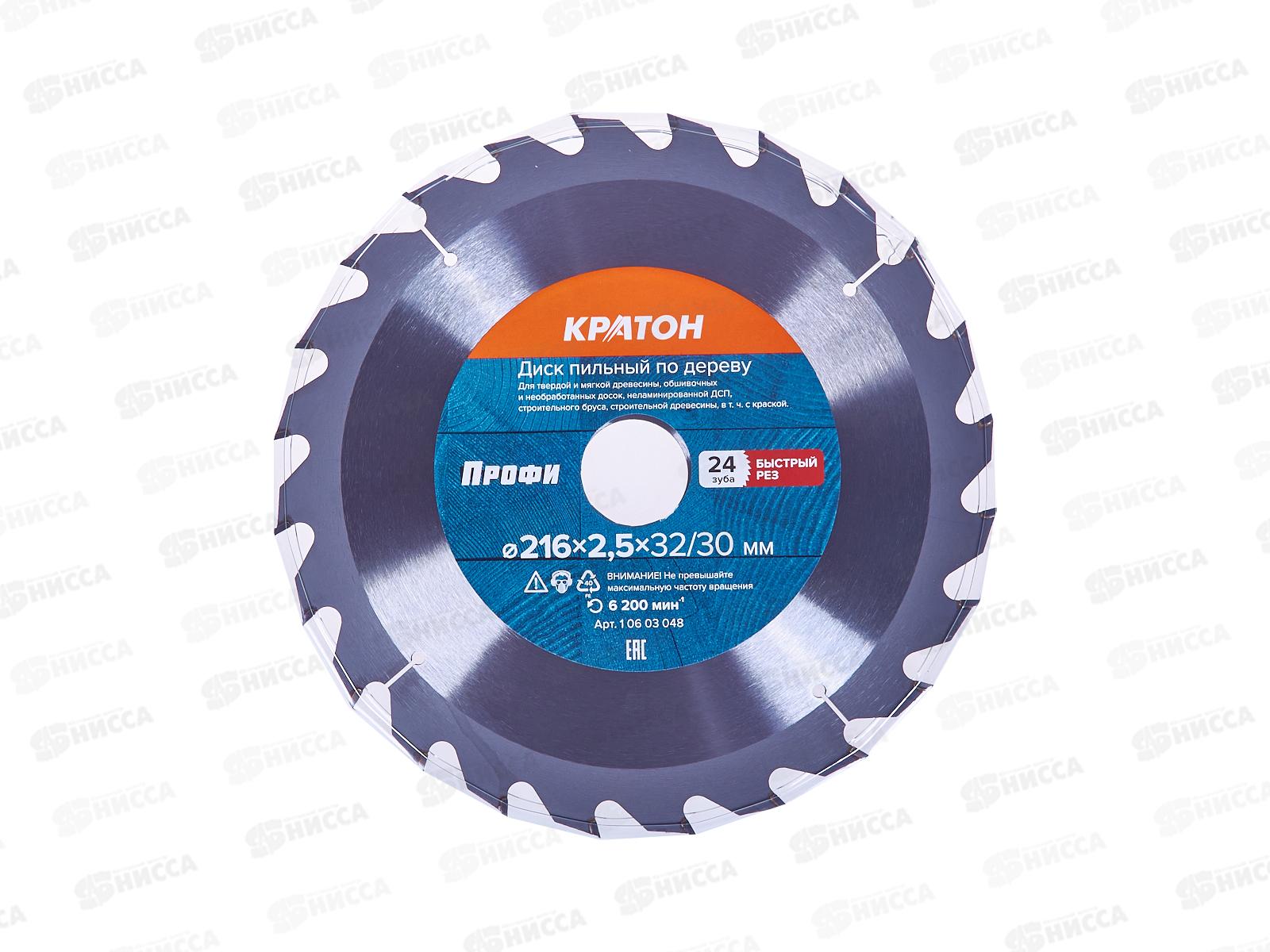 Диск пильный по дереву быстрый рез Кратон PRFESSIONAL O216х32/30х2,5мм, 24Т(10603048)