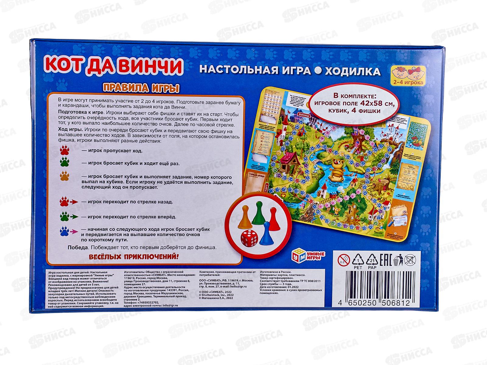 Настольная игра-ходилка "Кот да Винчи: большое приключение" станет отличным подарком для маленького любознайки. Играя, дети научатся действовать по правилам, соблюдать очерёдность ходов, выигрывать и проигрывать, в игровой форме обучает счёту и развивает ориентацию на плоскости, внимание, визуальное восприятие, логику, социально-коммуникативные навыки.