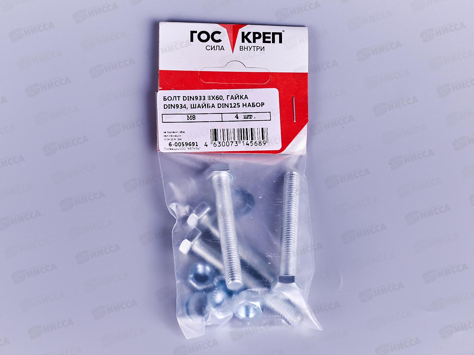 Болт DIN 933 М8x60 гайка+шайба (цинк 4шт) ГОСКРЕП-подвес (тк=10)