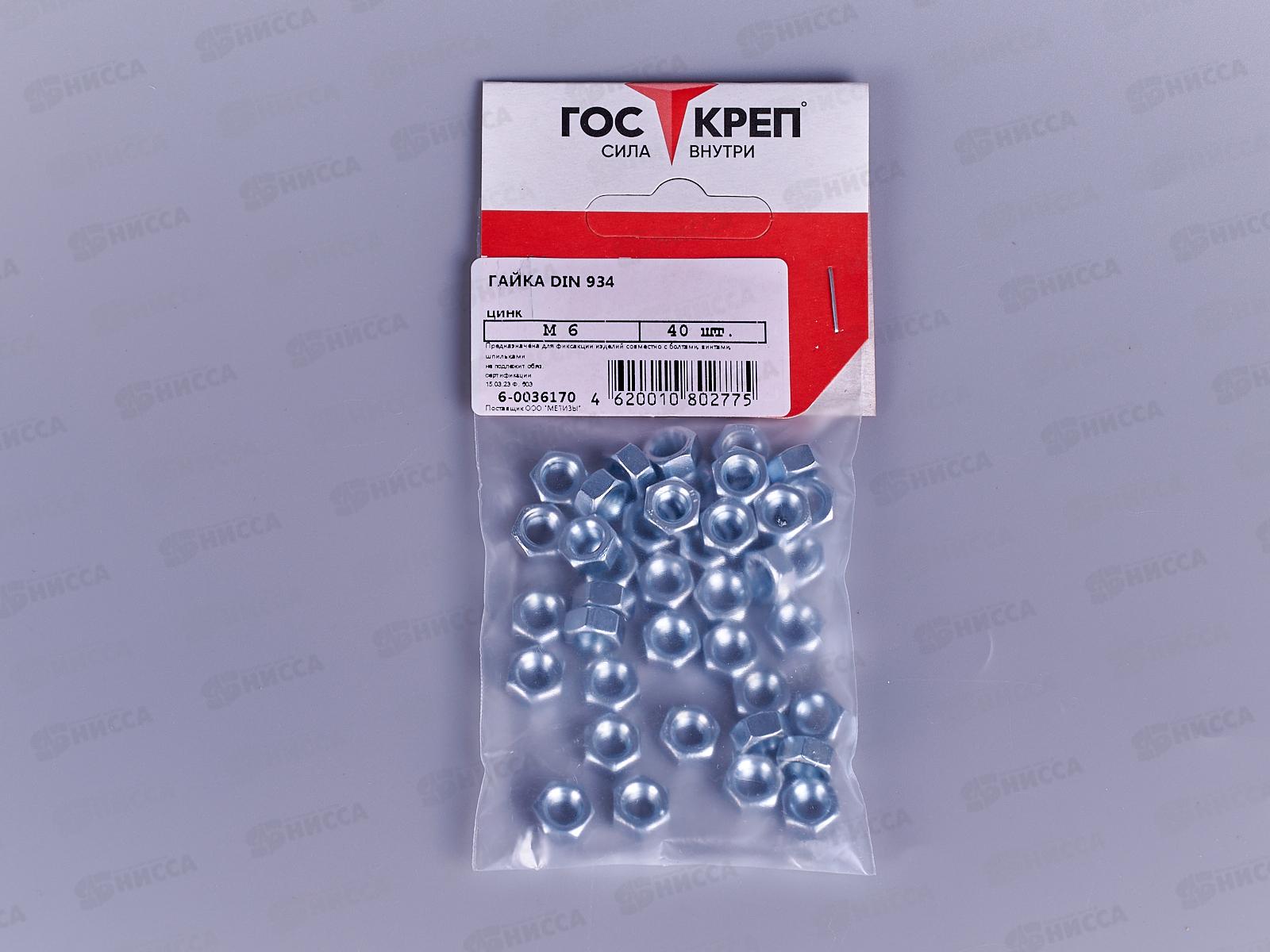 Гайка (DIN934) М6 (40шт) пакетик, Госкреп