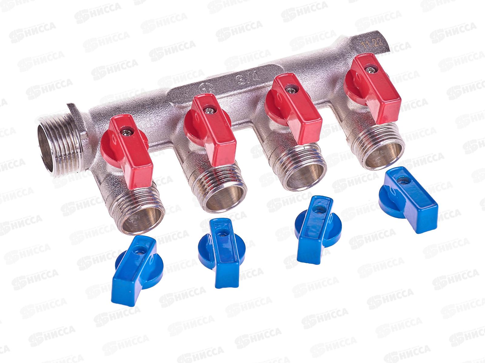 Коллектор 3/4х3/4х1/2х4 вых НР с кранами, 02426