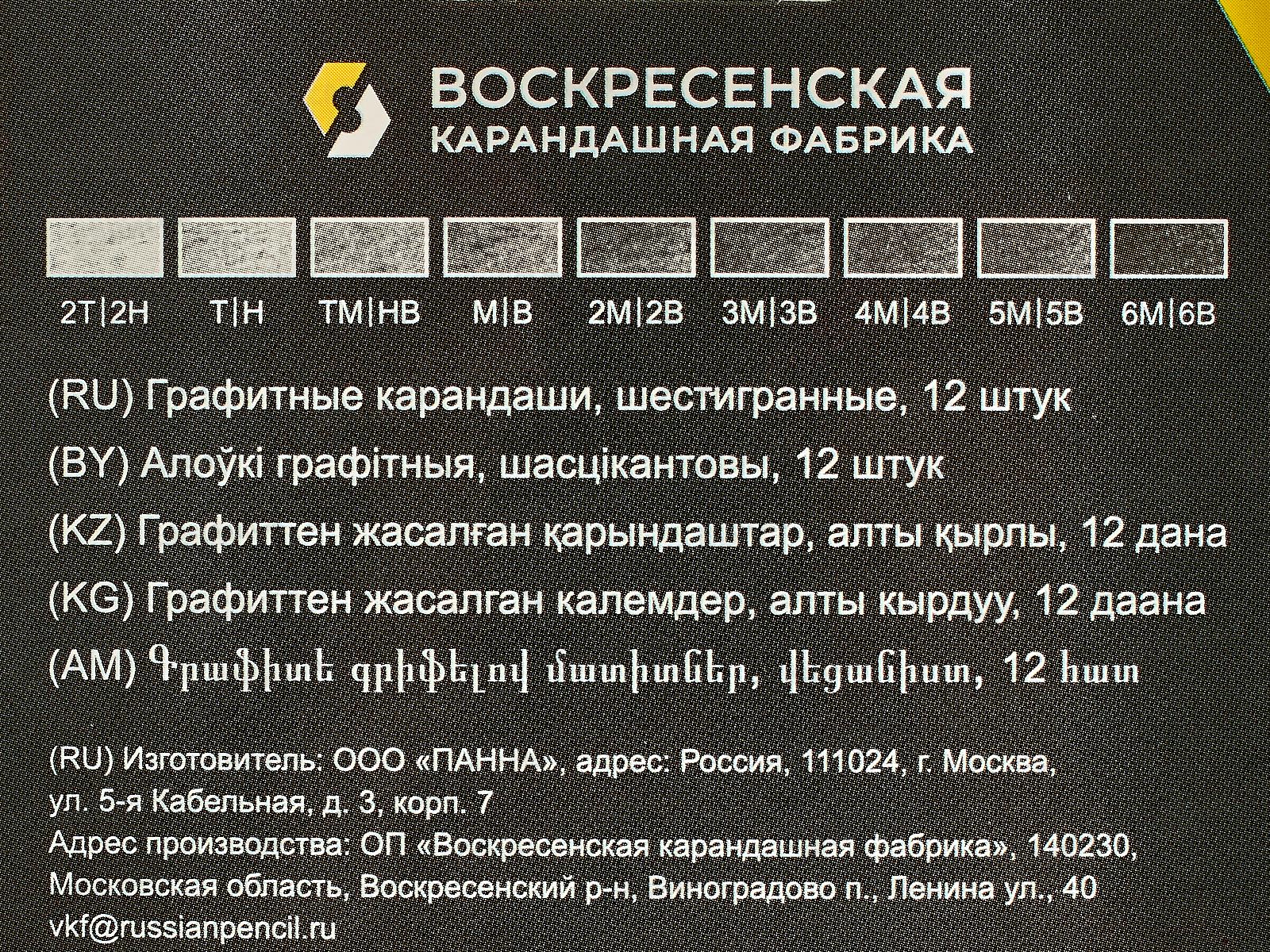 Твердость грифеля: 2Т, 2Т, Т, Т, ТМ, ТМ, М, 2М, 3М, 4М, 5М, 6М