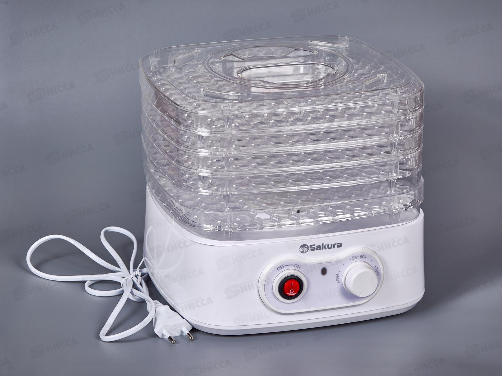 250 Вт, 5 ярусов, механическое управление, регулируемый термостат 40-70C, отключение при перегреве, высота сушилки 25см, размеры 1 яруса 23х24 см, регулируемая высота яруса: 1,2 - 2,5 см, крупная сетка, объем 7л. Назначение: для сушки овощей, фруктов, ры