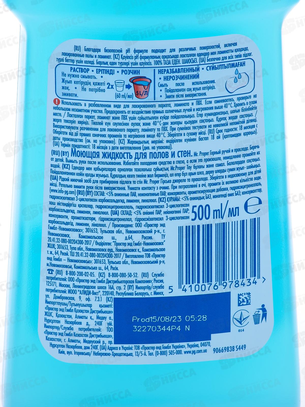 ПРОПЕР моющее средство 500мл Горный ручей и прохлада *20