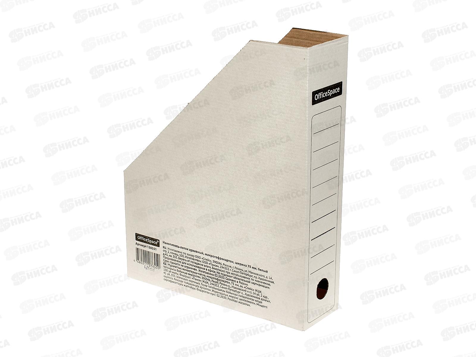 Лоток архивный OfficeSpact,картон.,75мм. бел,158551*20