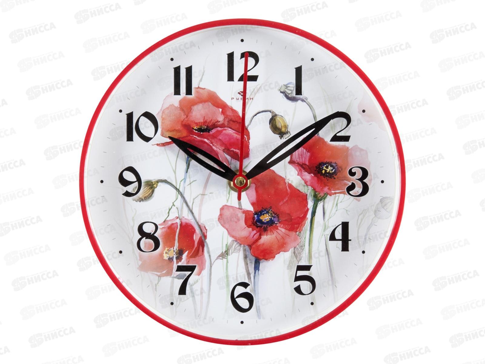 Часы настенные "21 Век" 2019-101(10) Маки Рубин красный корпус d=19,5