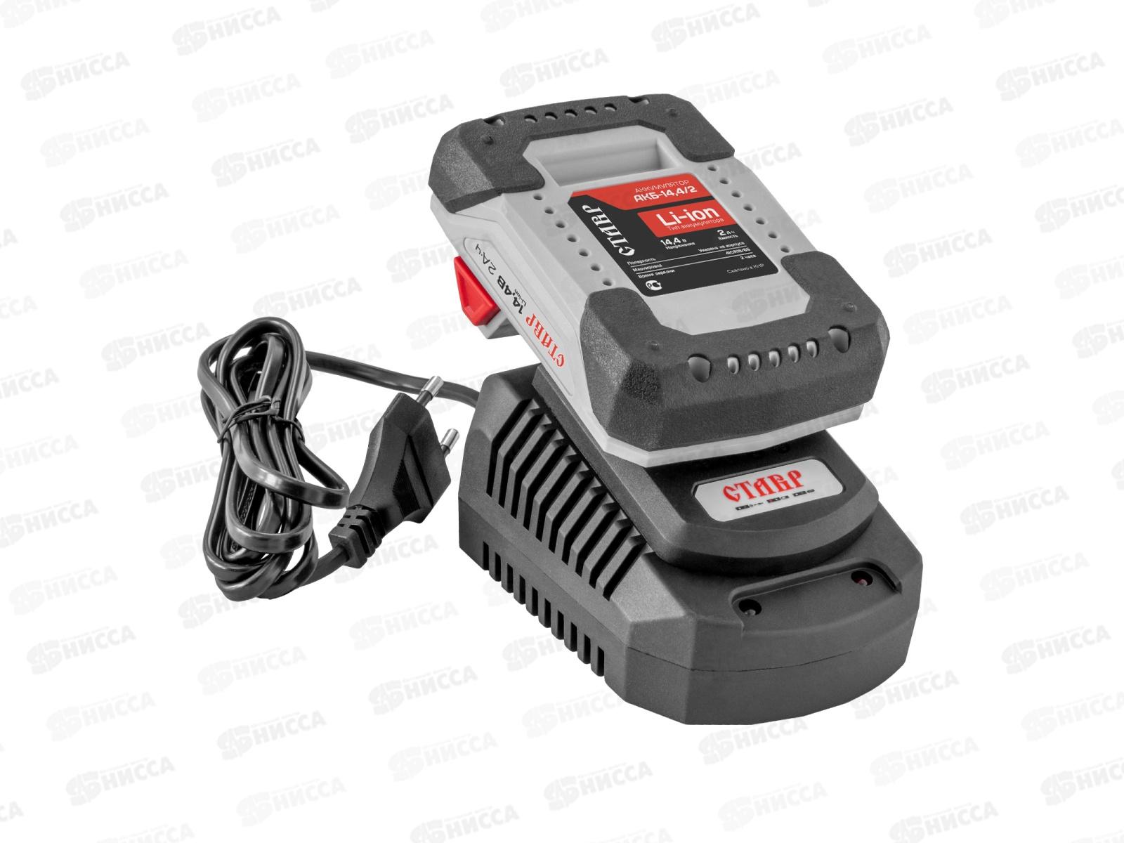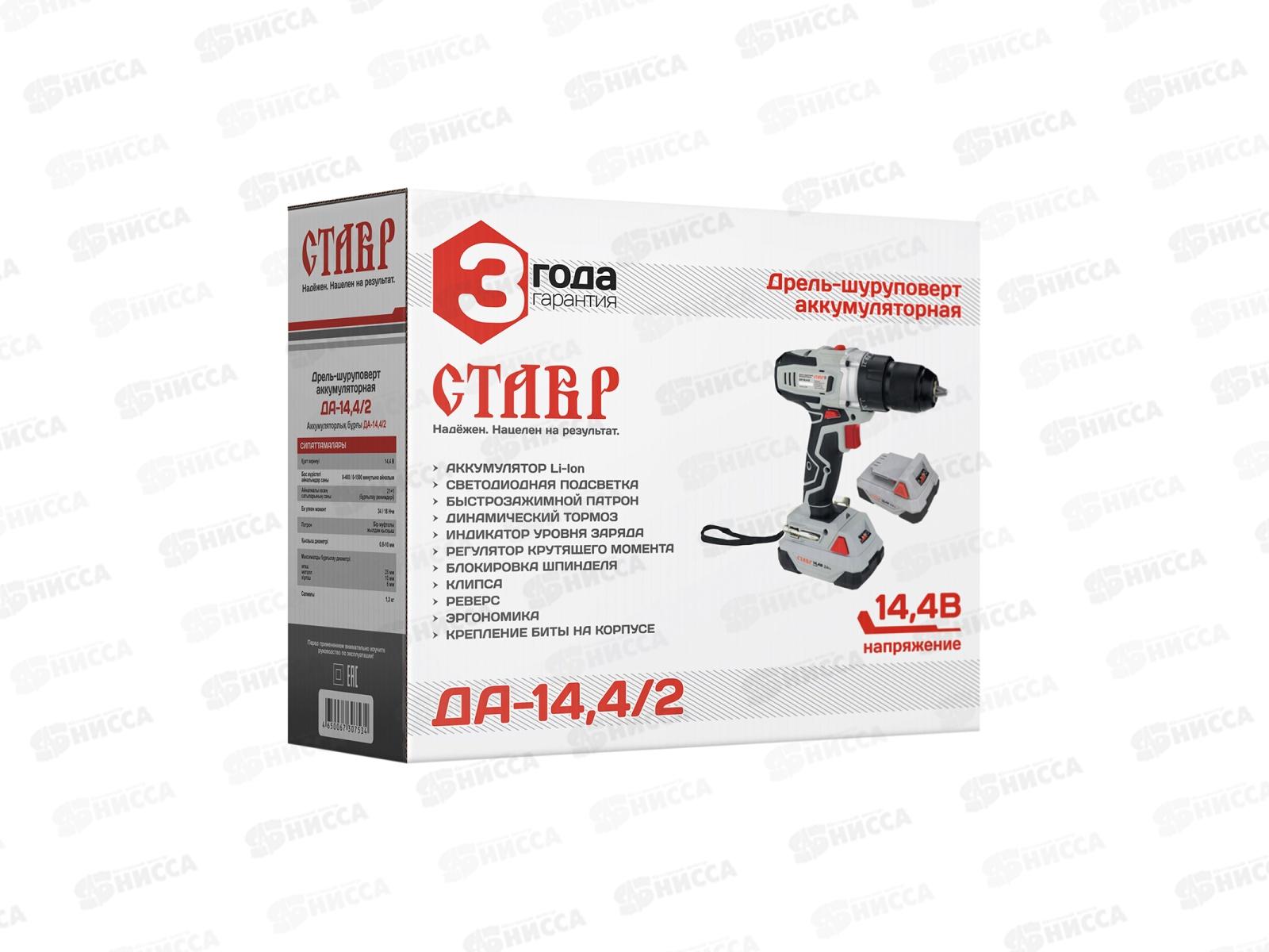 Дрель-шуруповерт аккумуляторная СТАВР ДА-14,4/2. Аккумулятор Li-ion отличается легкостью, компактностью, высокой энергетической плотностью, а специальная плата управления с микроконтроллером обеспечивает стабильную производительность и защищает аккумулятор от перегрузки, перегрева, перезаряда и предотвращает саморазряд. Светодиодная подсветка обеспечивает отличную видимость в условиях слабого освещения рабочей зоны. Смена бит и сверл производится за считанные секунды. Динамический тормоз позволяет, отпустив кнопку включения, моментально остановить вращение патрона. Индикатор уровня заряда позволяет оценить время работы инструмента до подзаряда. Режим сверления и 17 ступеней крутящего момента для работы с различными по твердости материалами обеспечивают широкое применение инструмента. Блокировка шпинделя позволяет сменить рабочий инструмент одной рукой и завершить работу после полной разрядки аккумулятора. Клипса позволяет крепить инструмент на поясе. Реверс служит для легкого выкручивания сверла из материала и выворачивания крепежа. Прорезиненная рукоятка гарантирует повышенный комфорт и уменьшает утомляемость при продолжительной работе. Крепление биты на коррпусе. Комплектация: Аккумулятор (2 шт.), зарядное устройство, клипса, бита 1 шт. (установлена на корпусе).