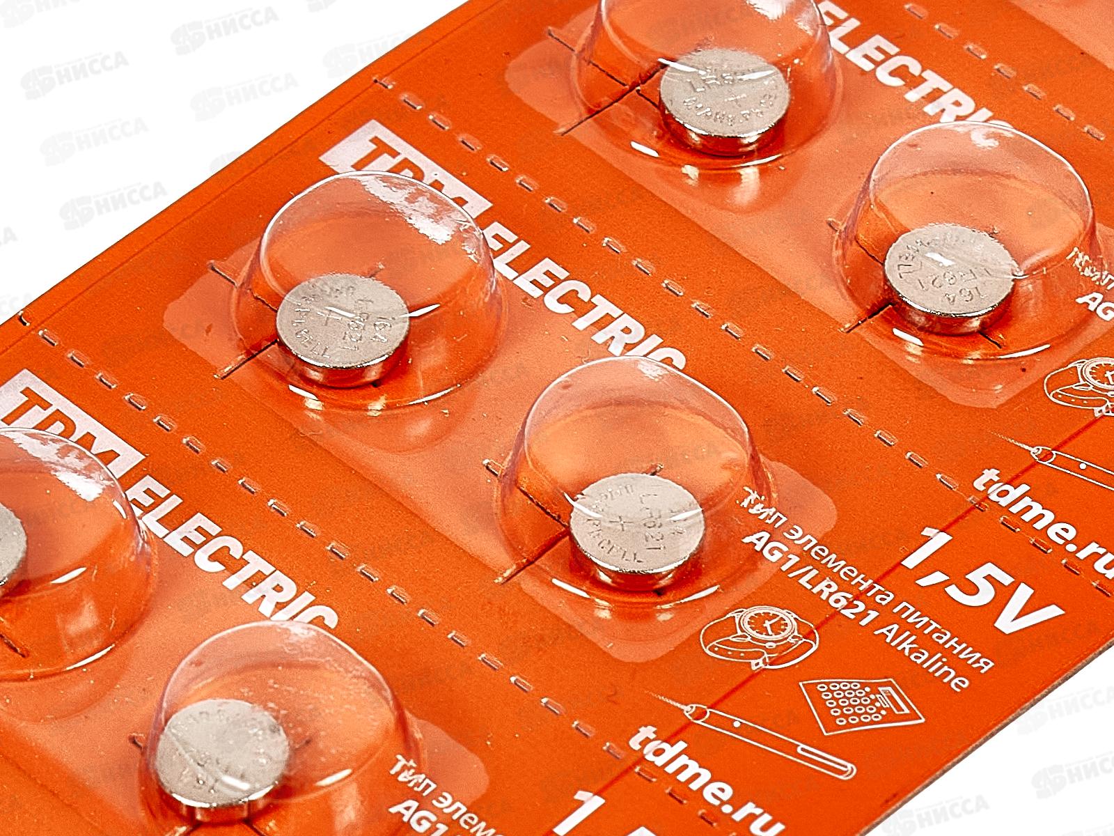 Батарейка ТДМ AG1/LR621 Alkaline, элемент питания 1,5В, ВР-10 *10