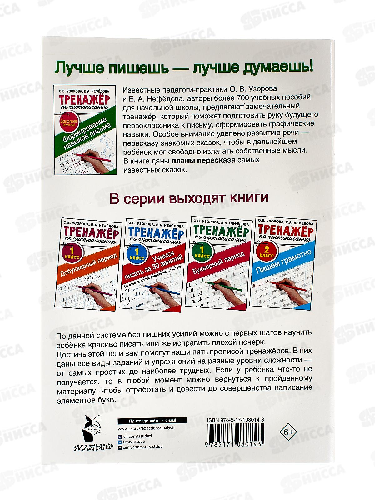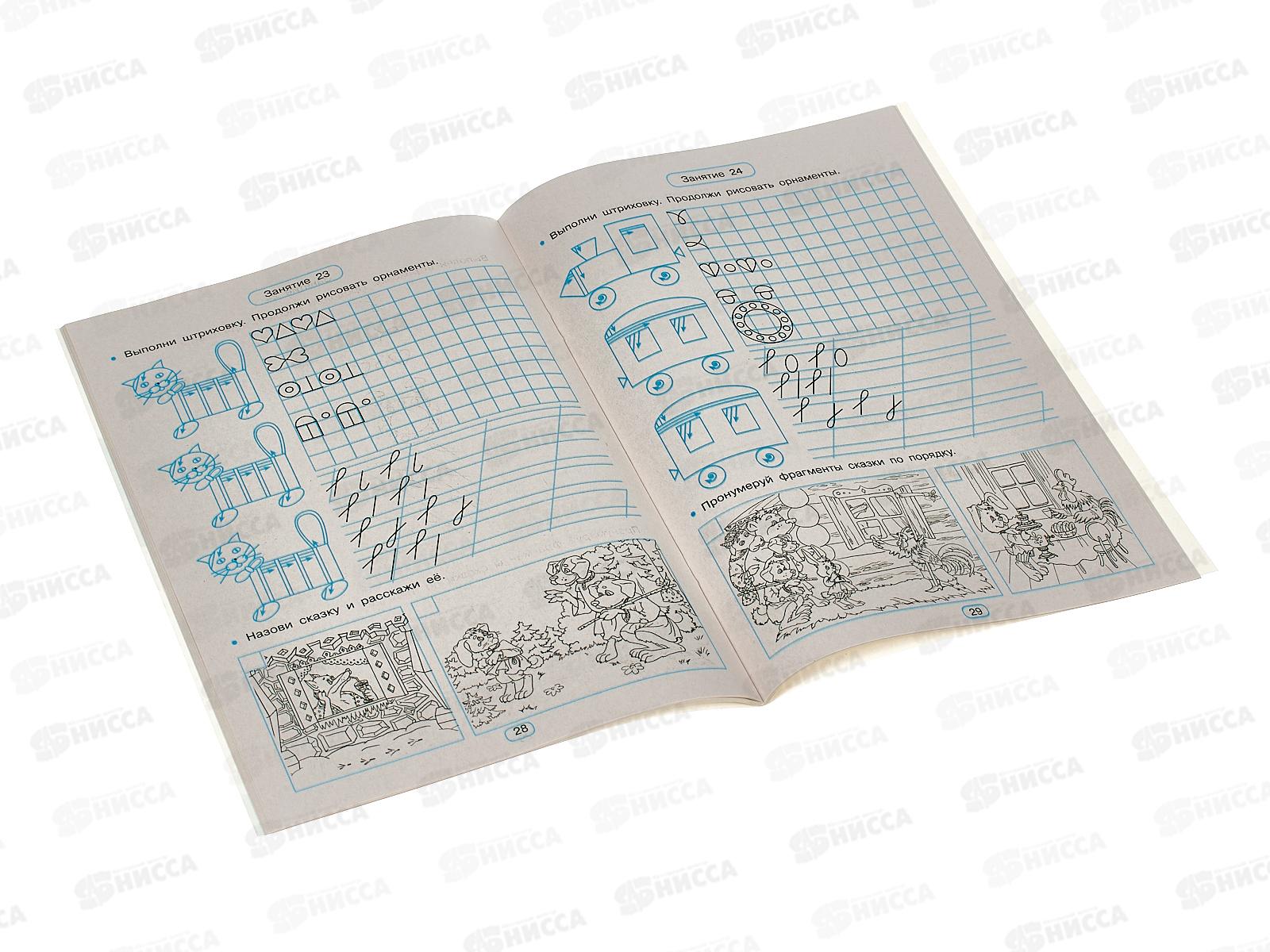 Курс из 32 занятий по письму (штриховка, орнаменты, рисование по клеточкам) и развитию речи (вопросы по сказкам) для детей 5-6 лет. В книге даны подробные рекомендации по организации рабочего места будущего первоклассника: высота стола и стула, правильная осанка, освещение и т.д. Также в книге есть планы пересказа 28 популярных сказок и рекомендации по работе с ними. Использование в книге второго цвета ускорит процесс освоения учебного материала.
