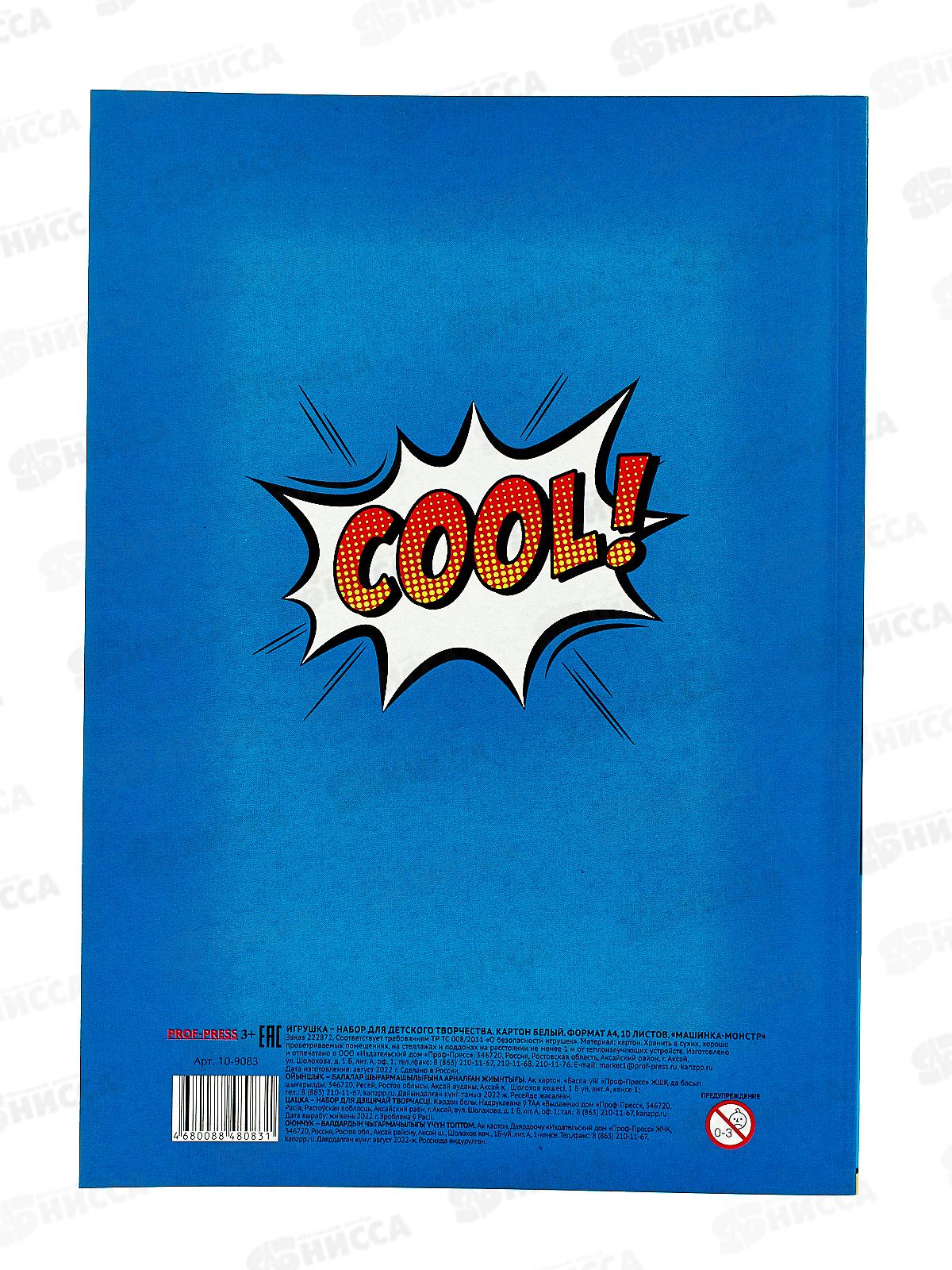 Картон белый А4 ПП 10л Машинка монстр, 10-9083 *30