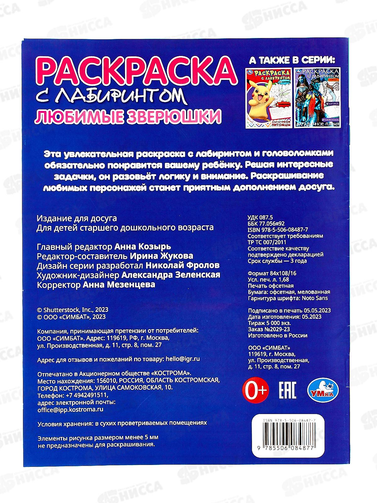 Раскраска "УМКА" 08487-7, Любимые зверюшки, с лабиринтом, 16стр*50