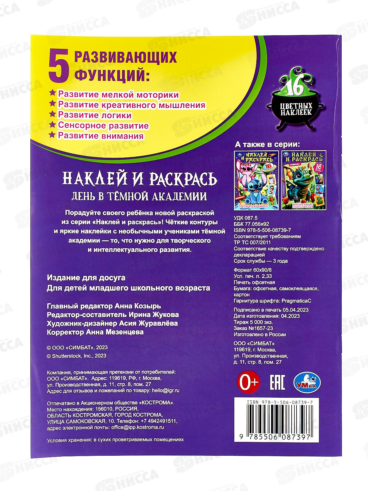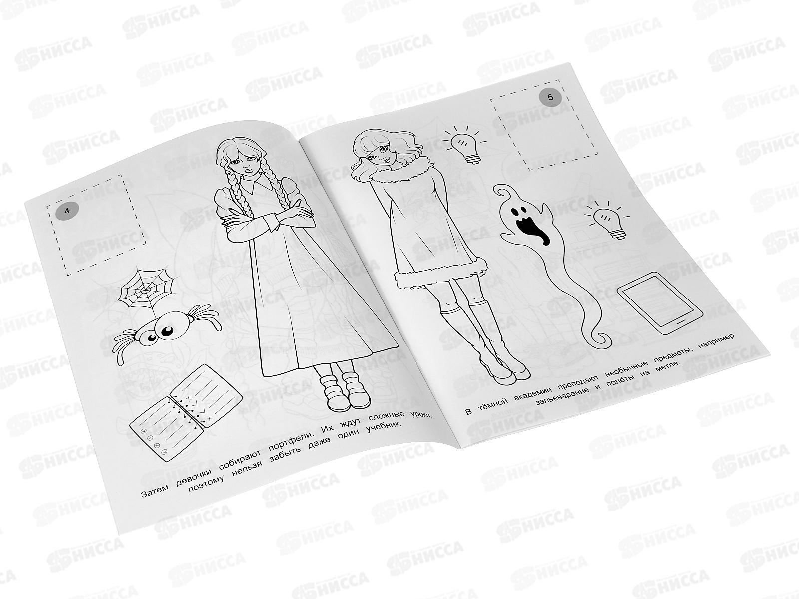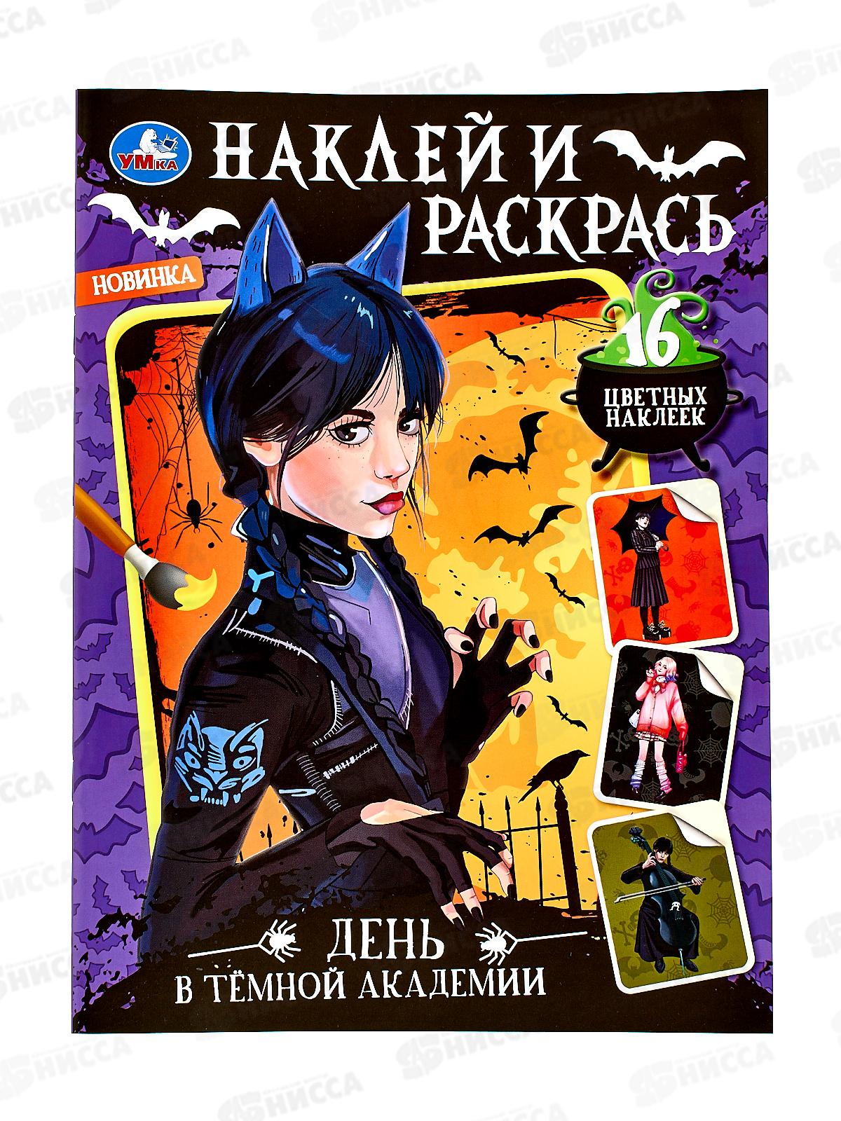 Раскраска с наклейками «День в тёмной академии» из серии «Наклей и раскрась» ТМ «УМка» станет прекрасным подарком для ребёнка: