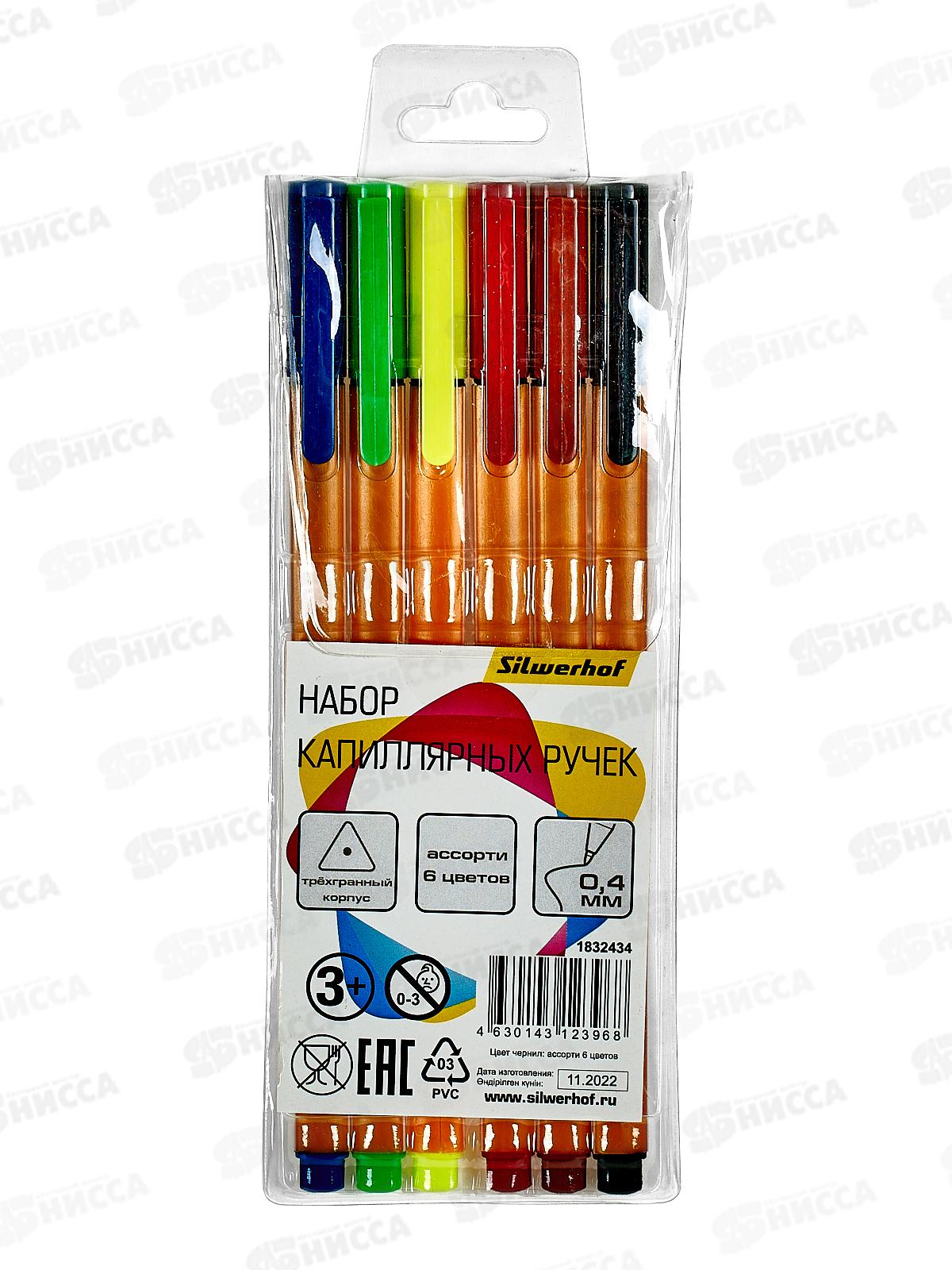 Ручки капиллярные Silwerhof 6шт.чернила ассорти 1832434