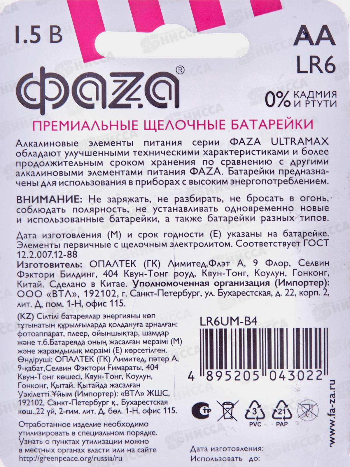 Батарейка ФАZA LR6 Ultra Max , BL-4 *4/48/576