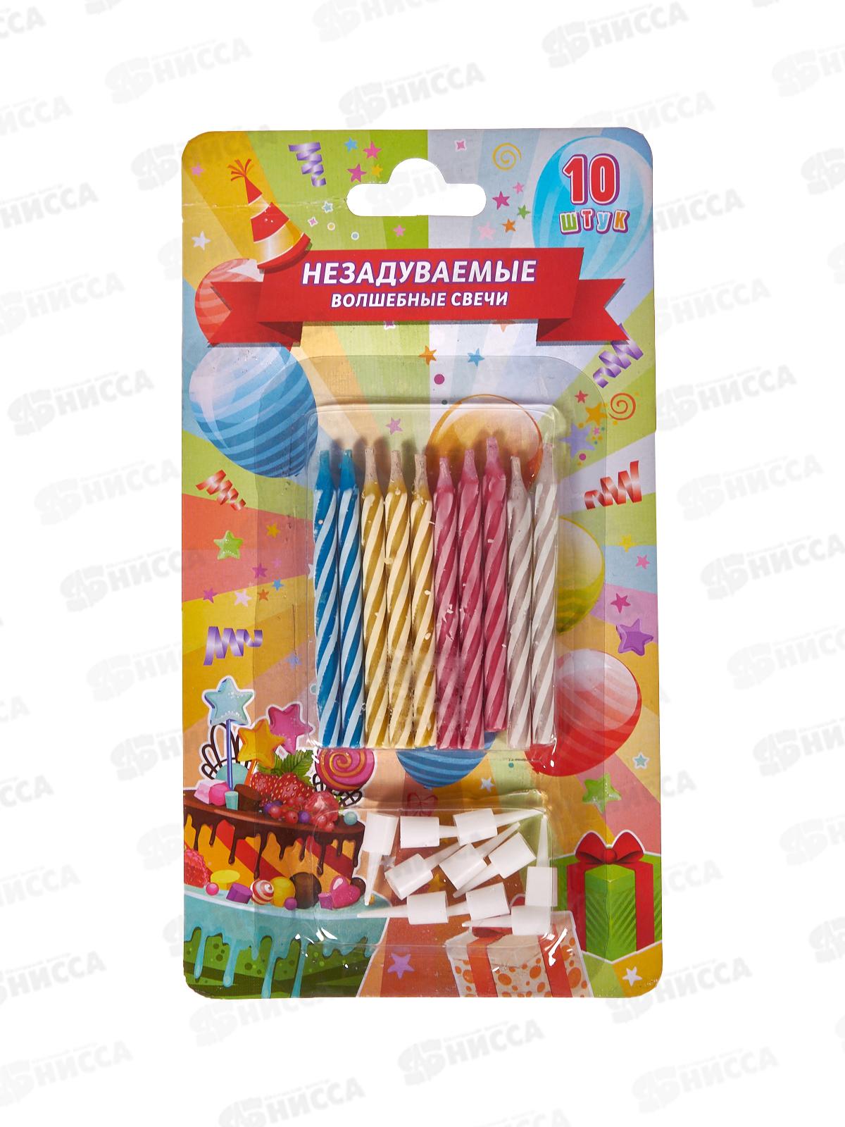 Свечи для торта незадуваемые, 10шт С днем рождения, МС-81040-НВ бл.
