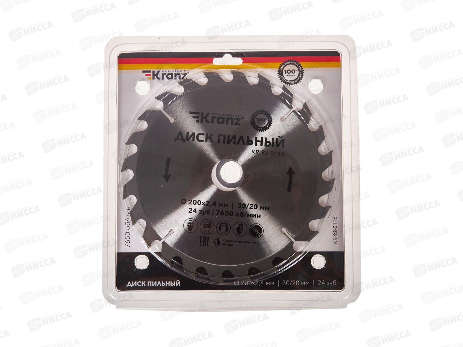 Диск пильный 200мм х 24зуб х 30/20мм Kranz, KR-92-0116