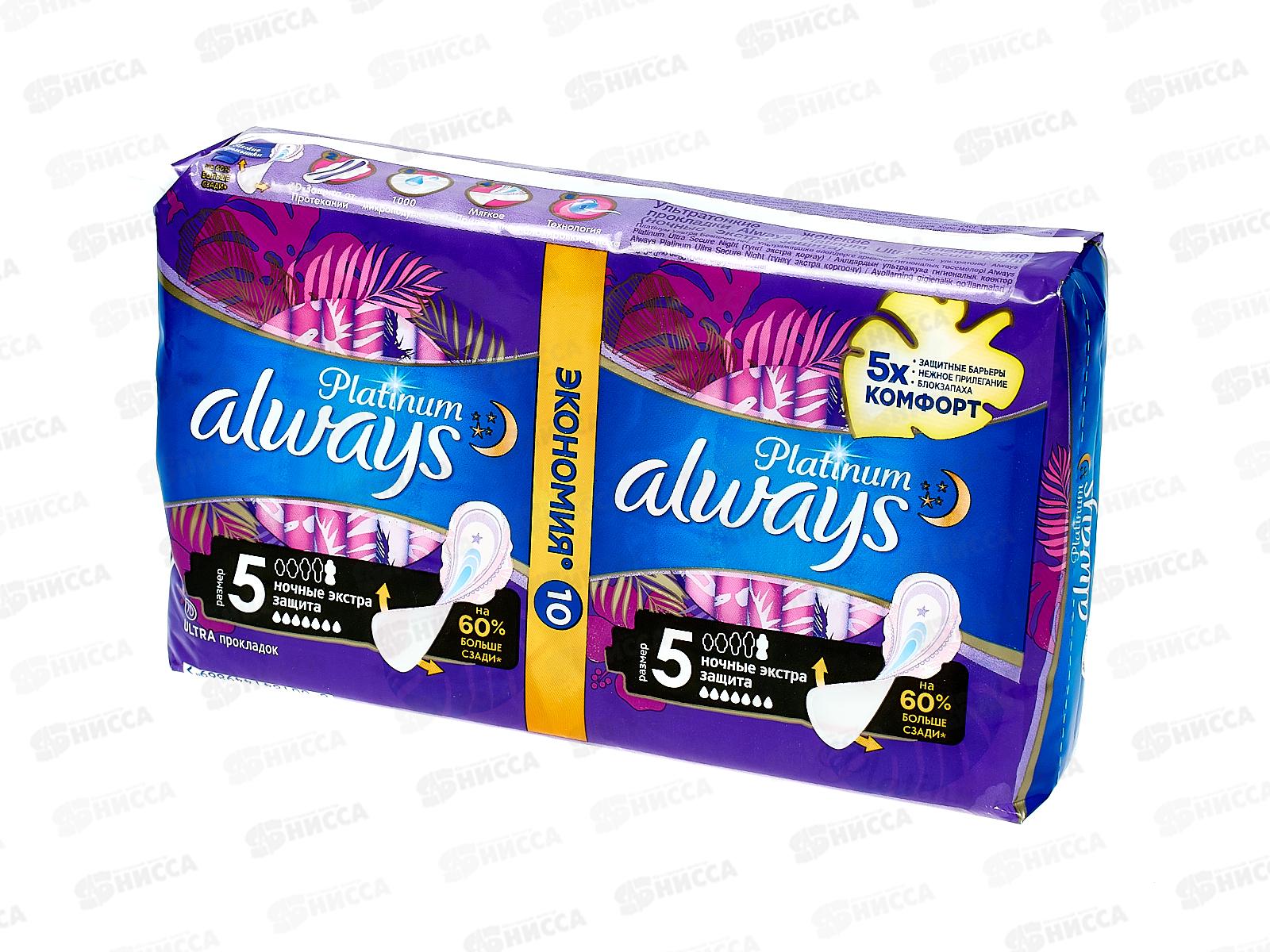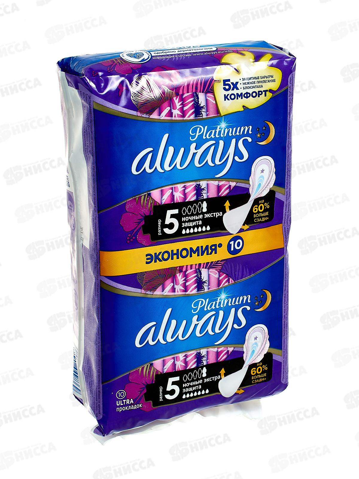 Прокладки ОЛВЕЙС ультра Platinum Secure найт экстра защита (ночные) 10шт *12