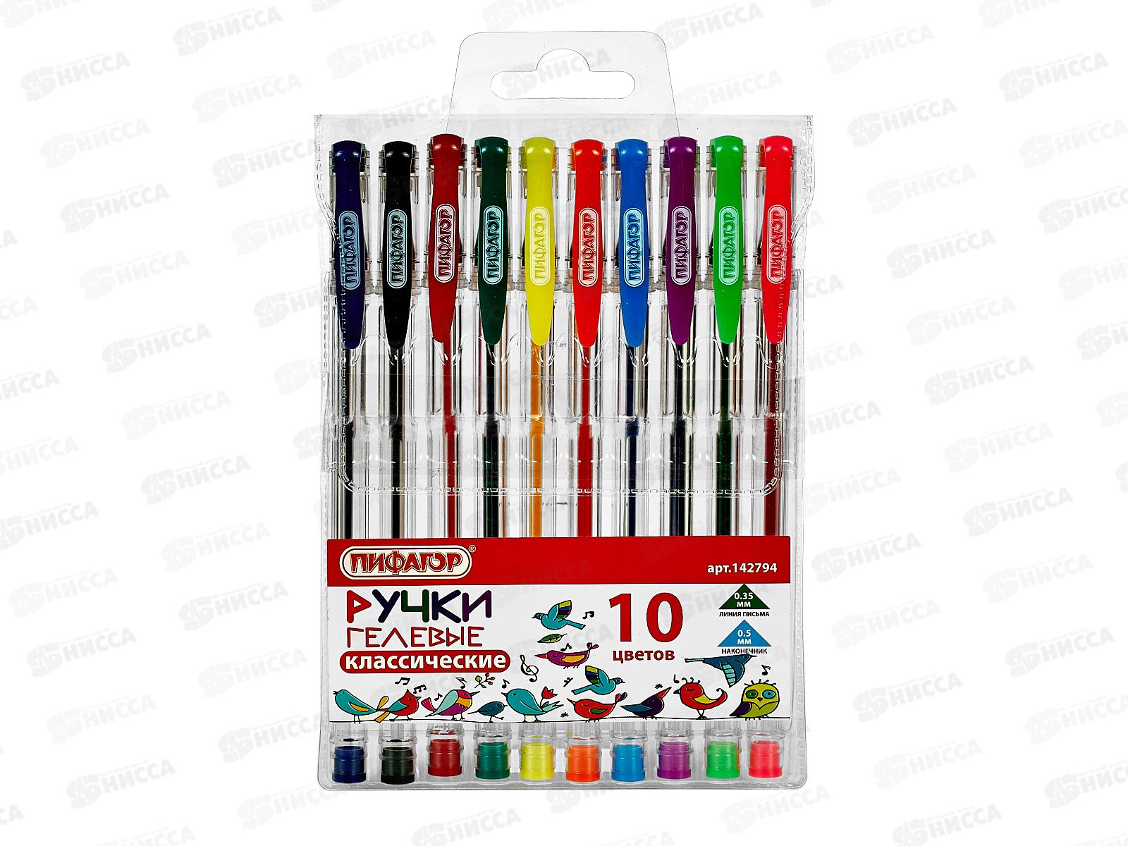 Ручки гелевые ПИФАГОР 10 цветов 142794