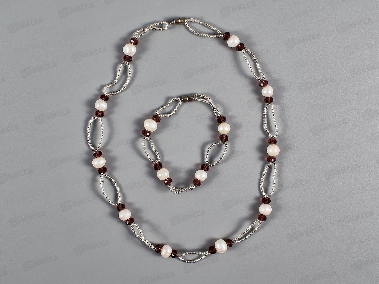 Набор бижутерии бусы натур.жемчуг,горн.хрусталь +браслет№3800